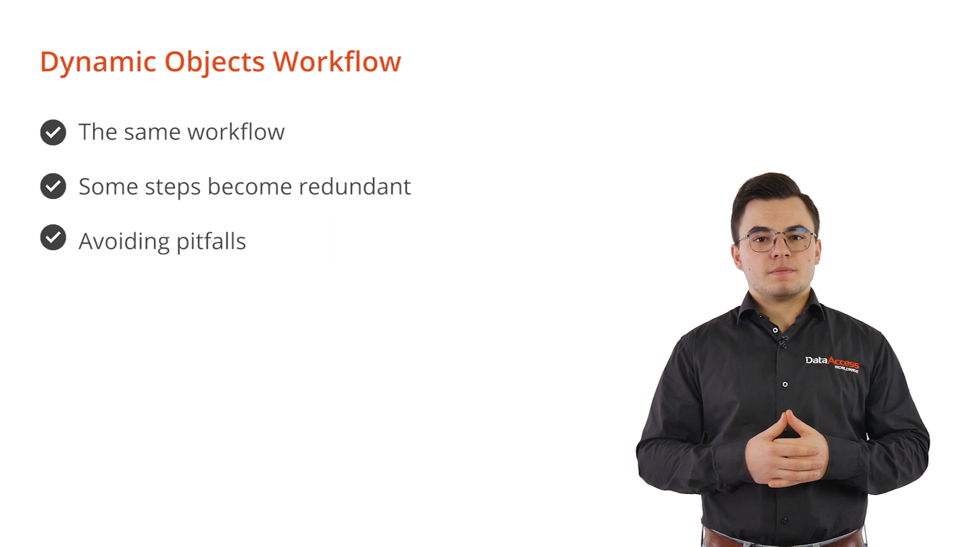 Generally, the same workflow is always used when creating an application with dynamic objects. This lesson discusses all of the steps in the workflow and why the exist. Over time, some of the steps may become redundant or were completed during earlier steps. Nevertheless, it is recommended to follow this workflow to ensure that common mistakes are avoided during the early of development.