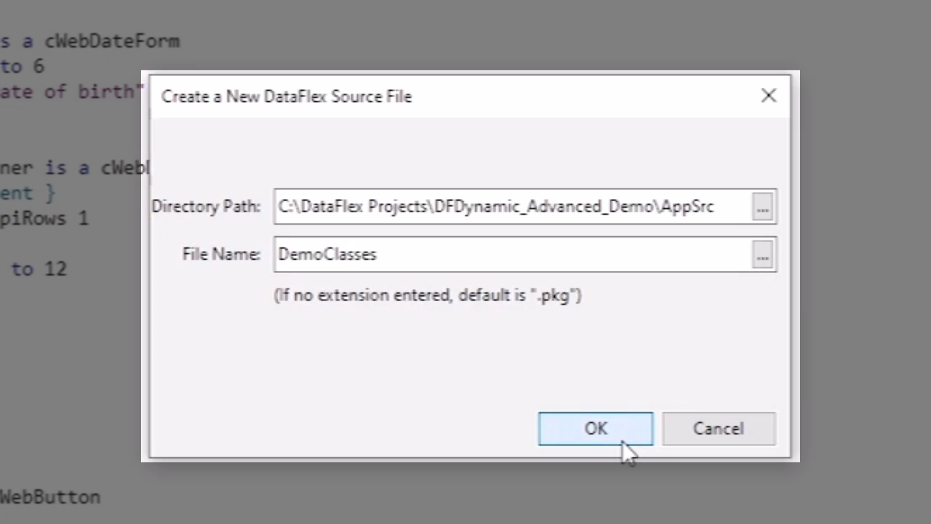 - Add ‘File Name,’ “DemoClasses,” and select OK