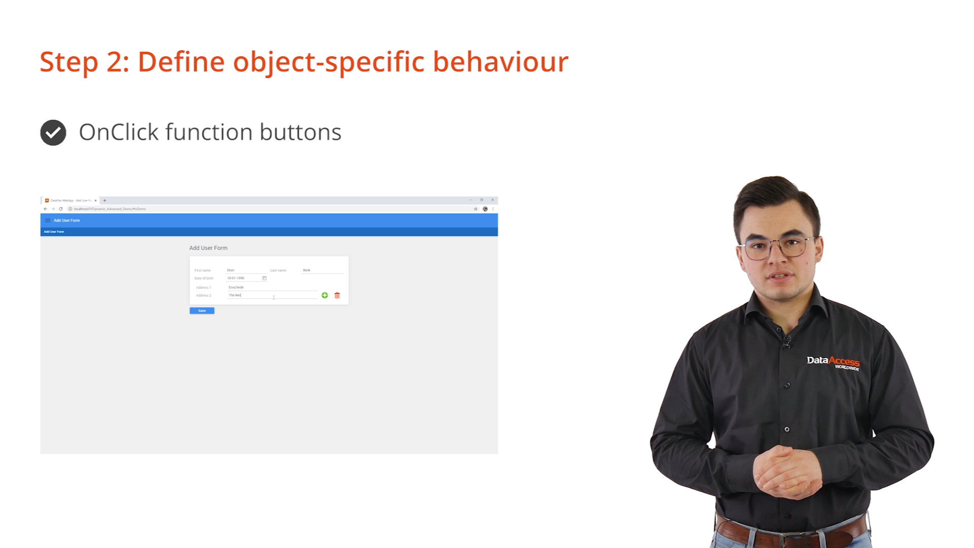 - The next step is to write the OnClick function for each of the buttons. The OnClick procedure for the cAddRow button inserts a new address bar causing the two control buttons to shift downwards.