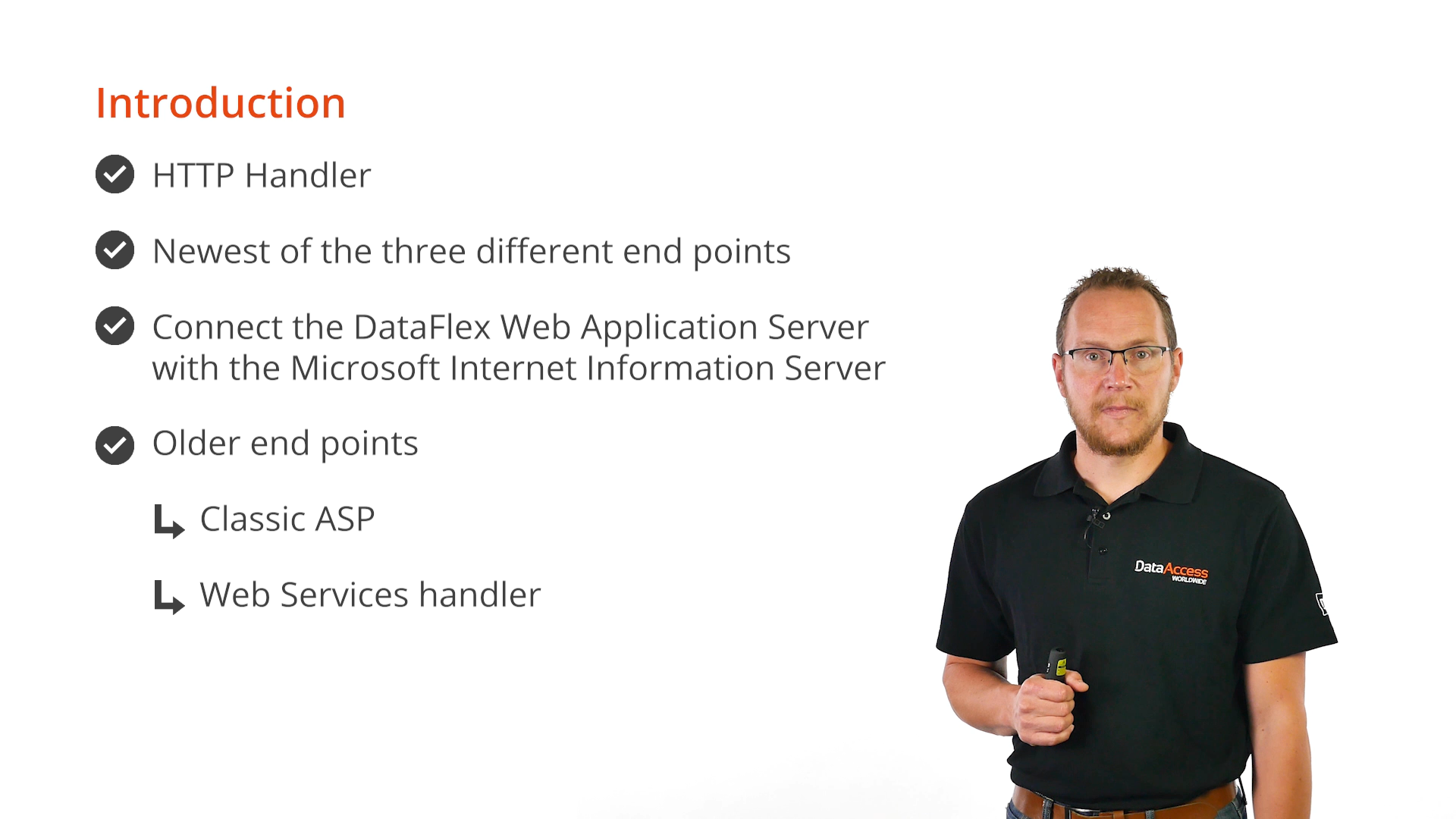 The HTTP Handler is the newest of the three different end points that connect the DataFlex Web Application Server with the Microsoft Internet Information Server (IIS).