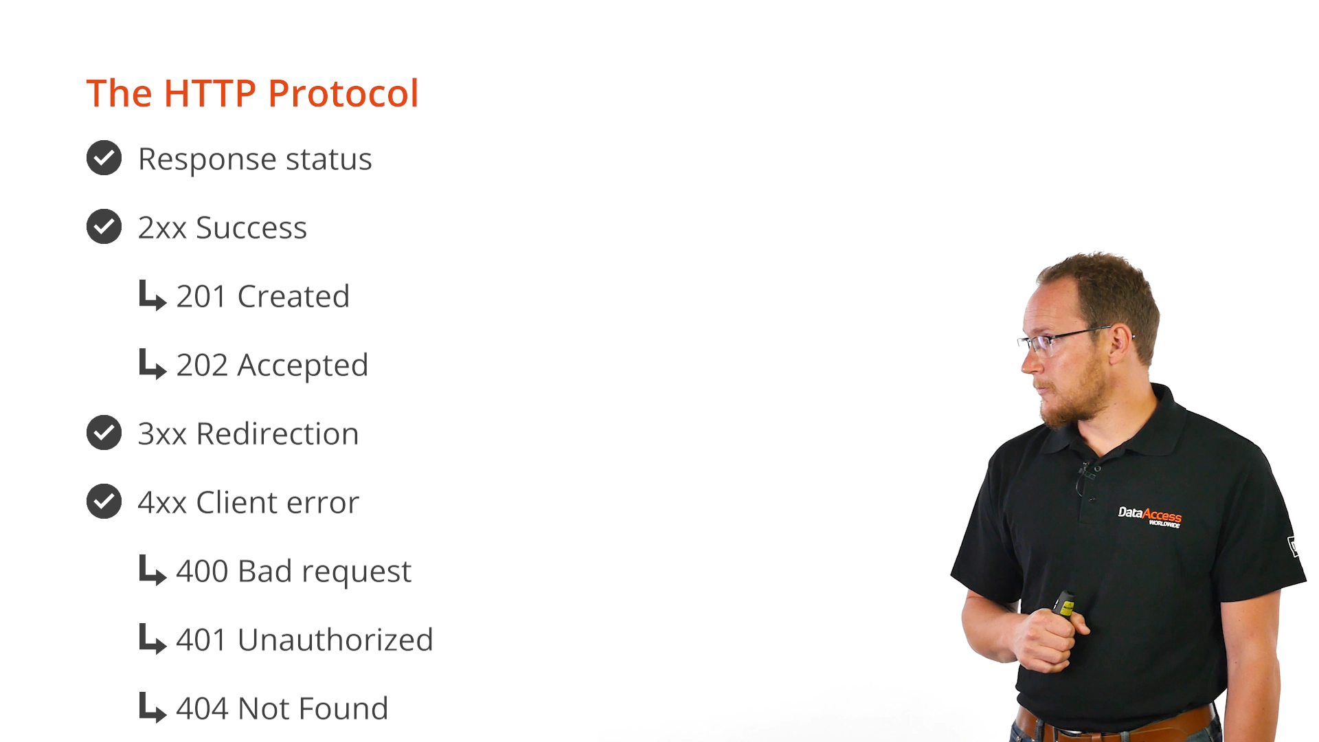 Response status codes have been standardized. Those in the 200 range indicate success. 201, for example, indicates hat something was successfully created, and 202 indicates something was accepted. Those in the 300 range indicates redirection or that something has moved on the server. 400 range codes are client errors; 400 is a bad request, 401 is unauthorized access, and 404 is path not found.