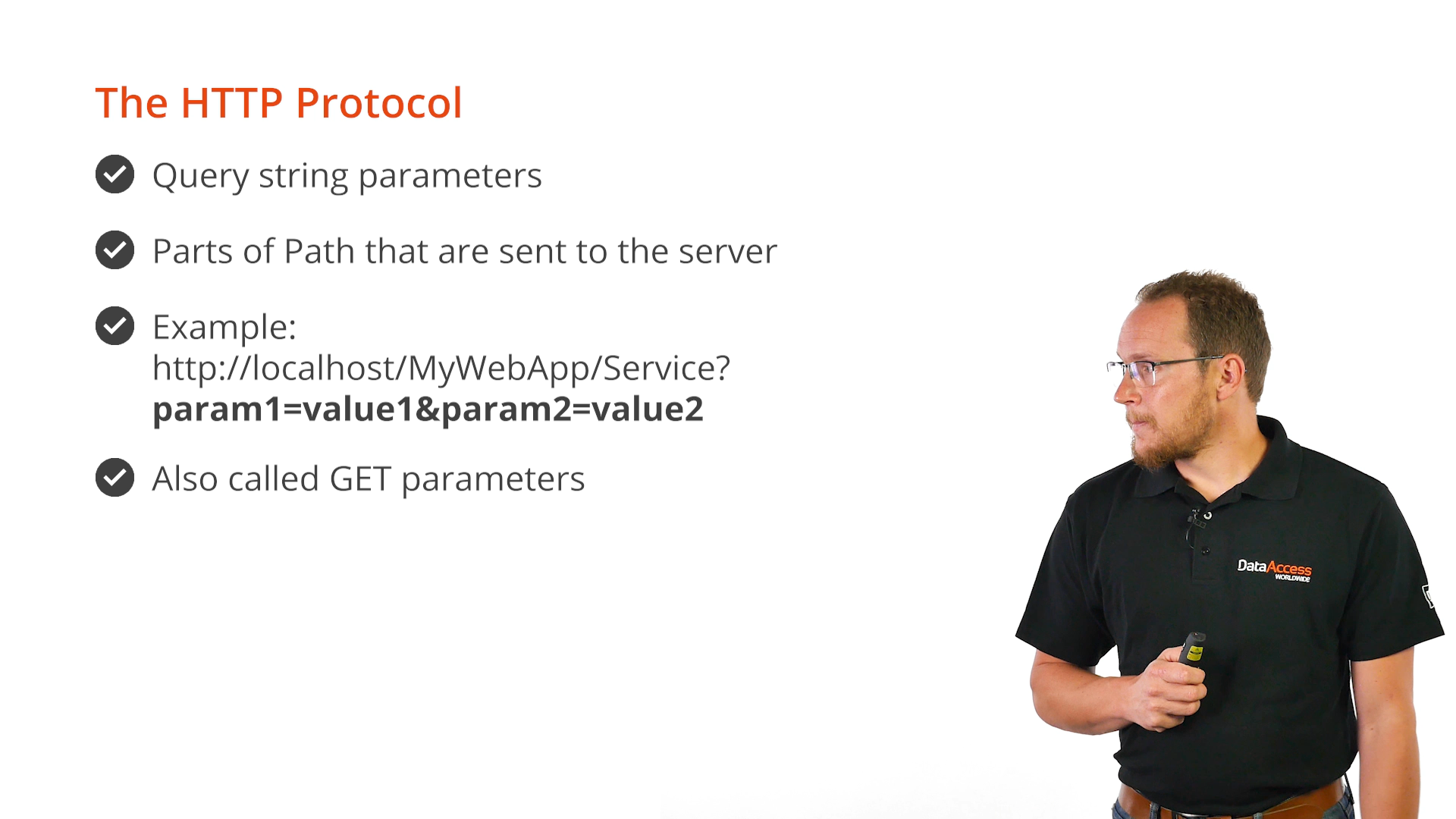 Query string parameters are parts of the path that are sent to the server. They are name value peers that are appended to the path. These are also called GET parameters.