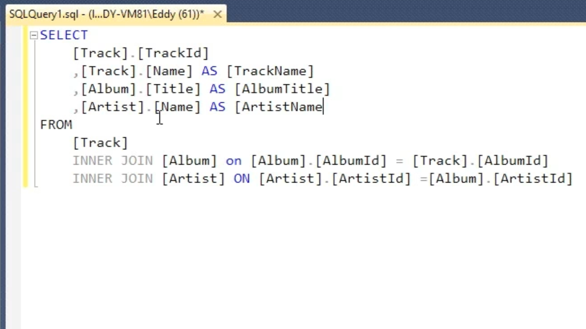 To turn the SQL statement into a view insert CREATE VIEW [vwNAME] AS at the top of the code block. vwTrack is the chosen name for this example.