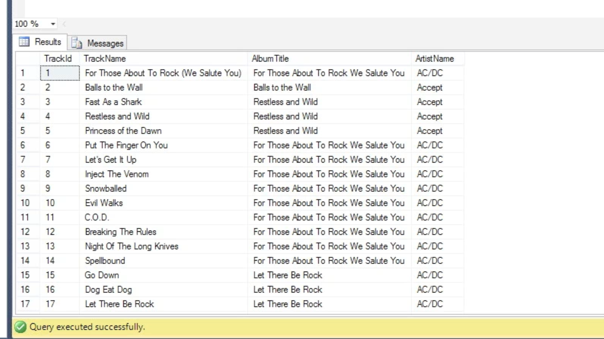Select EXECUTE from the top toolbar to see the results below in the Results tab.