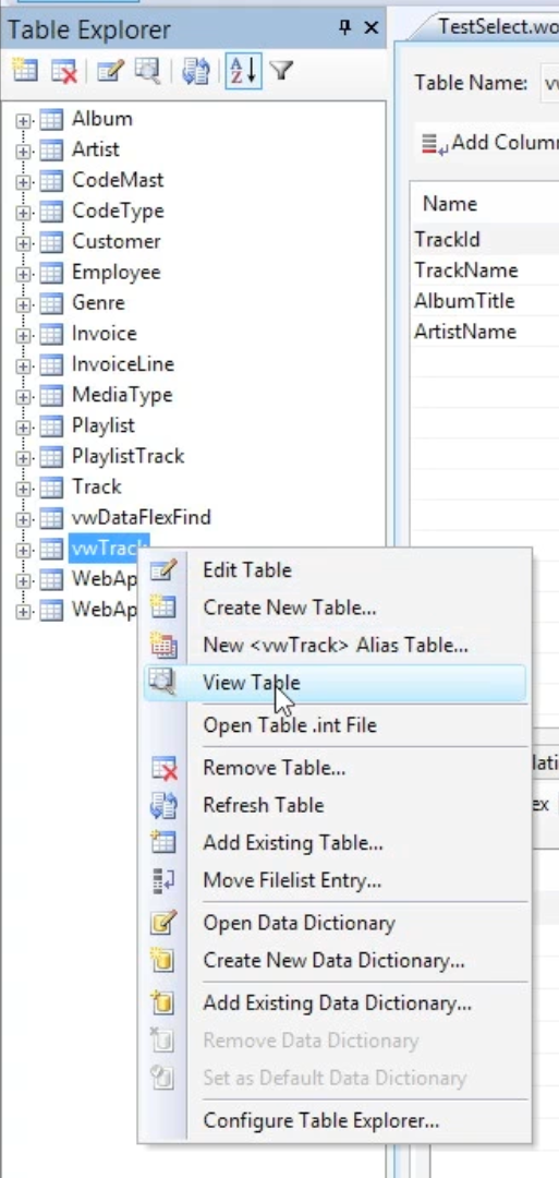 Double click vwTrack in the Table Explorer.