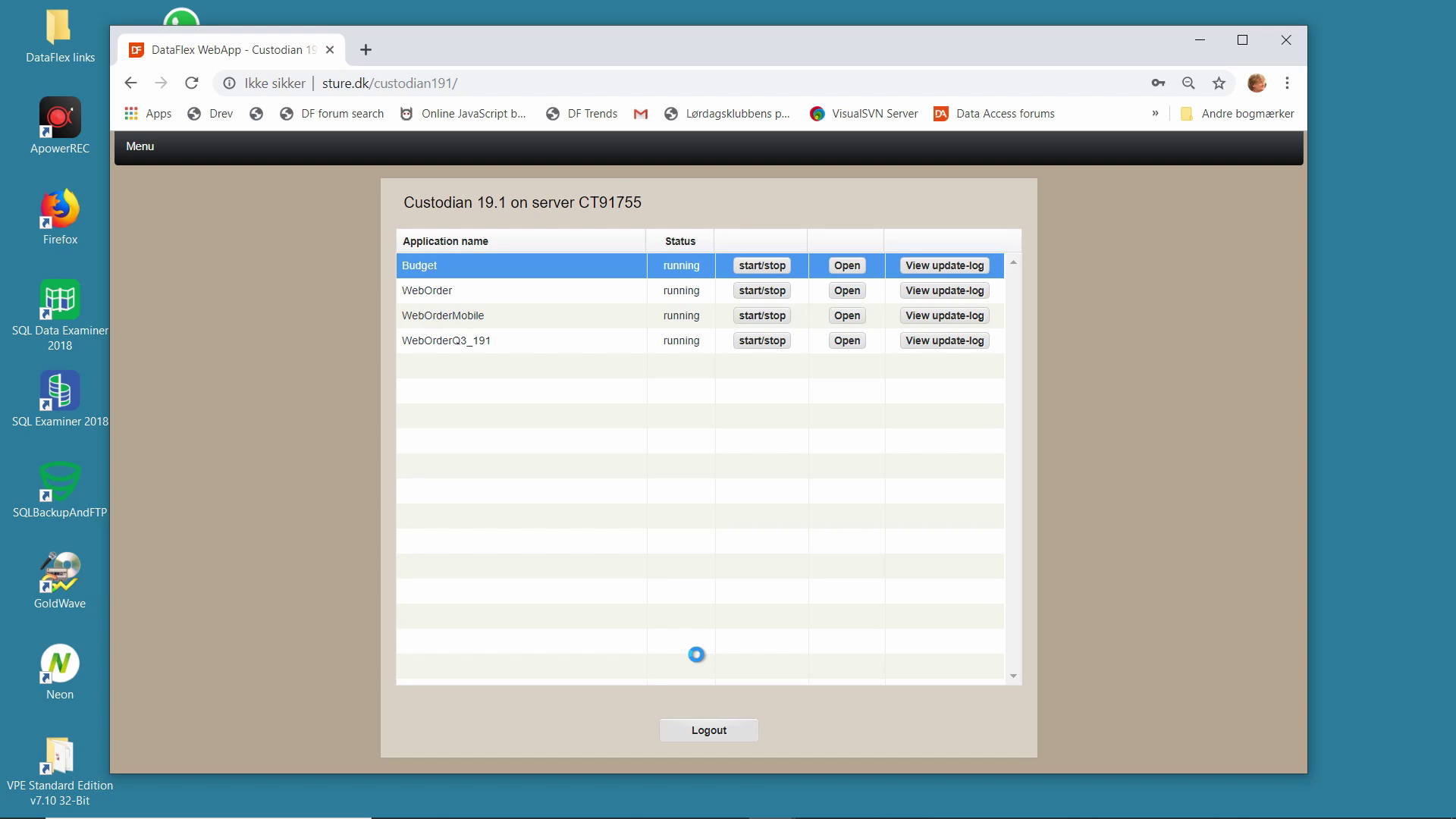 Custodian 19.1 is a DataFlex application that provides an interface for updating other web apps running on the same server.