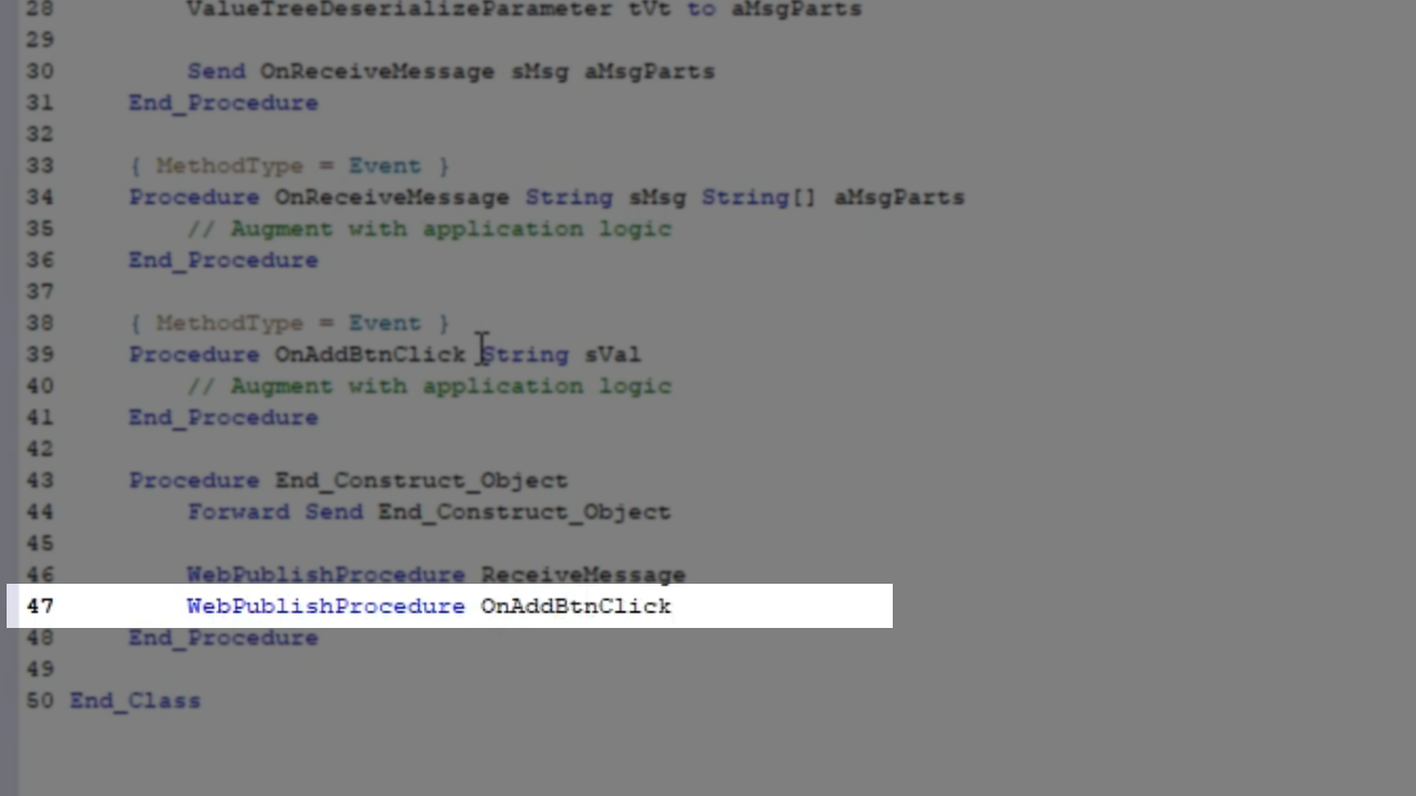 - The pbServerOnAddBtnClick is automatically generated on the client, but needs to be manually created on the server