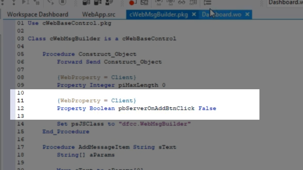 - Open cWebMsgBuilder.pkg in the DataFlex Studio