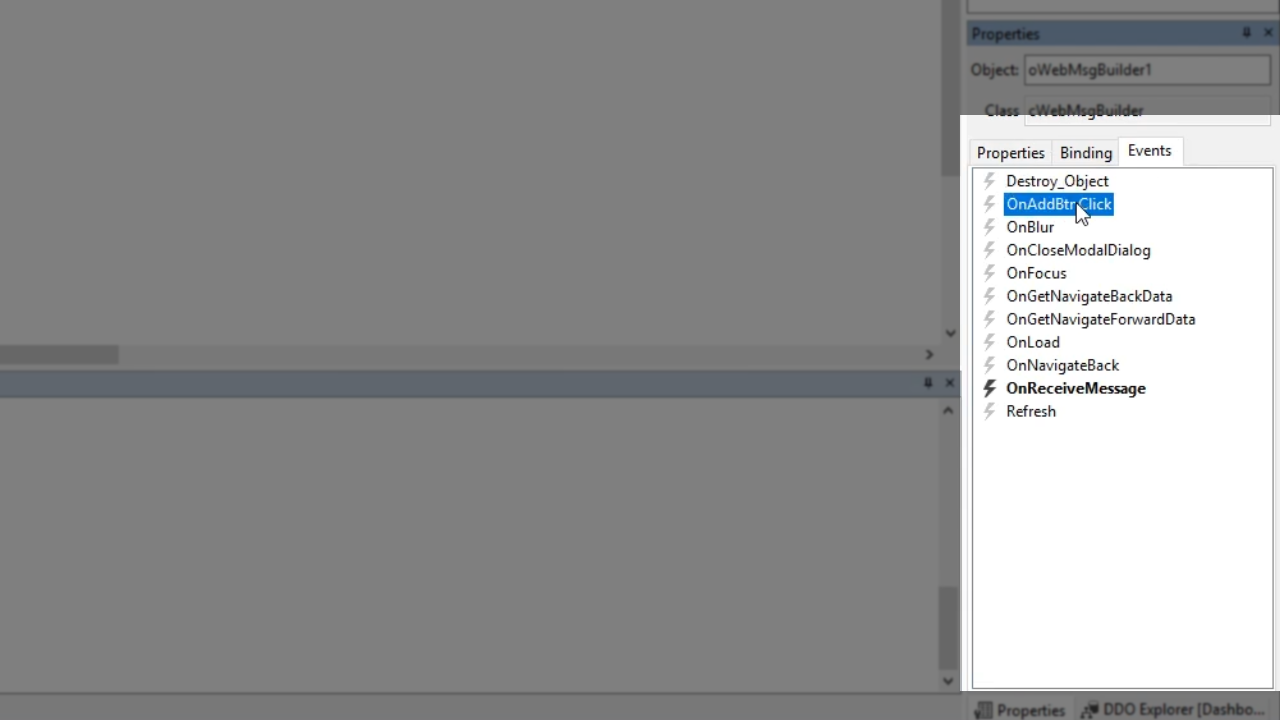 - Open the object properties in the ‘Properties’ panel on the right for the webMsgBuilder