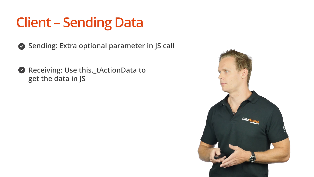To send data from the client to the server an extra optional parameter needs to be added to the JavaScript call