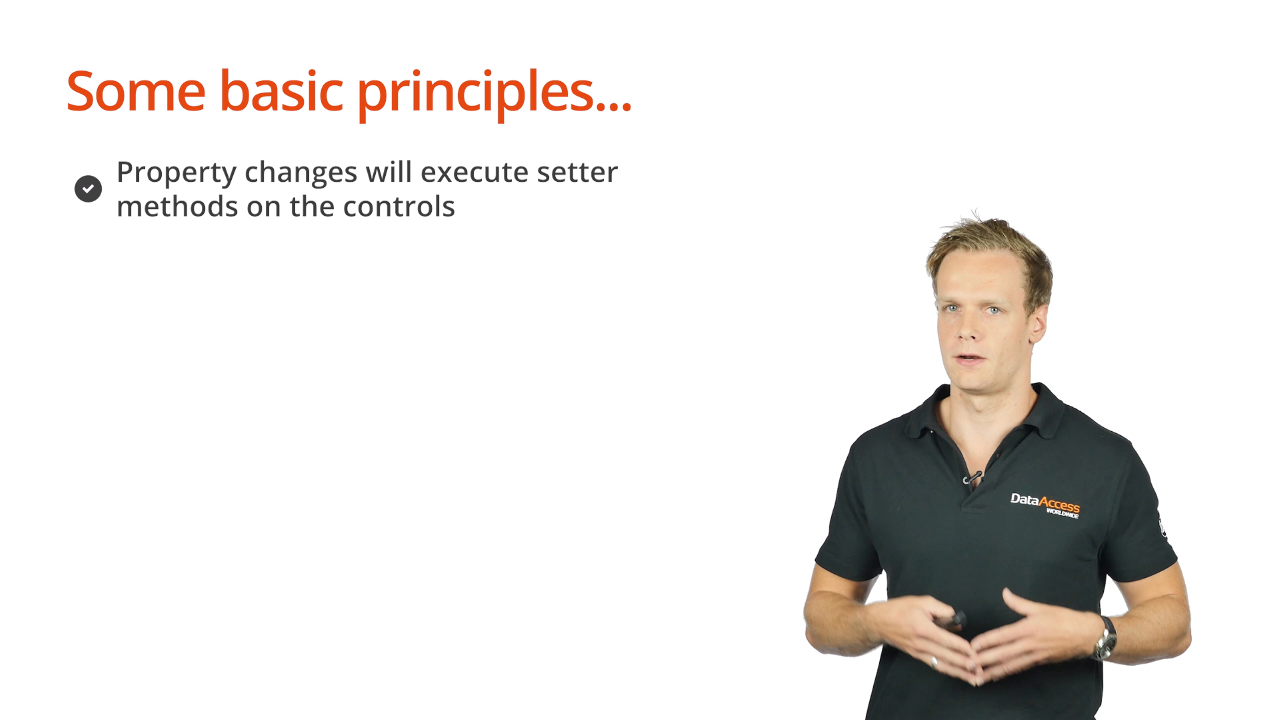 - Property changes executed on the server will execute setter methods on the control. When the control’s web set web property is executed it will execute a setter method on the client-side portion of that control.