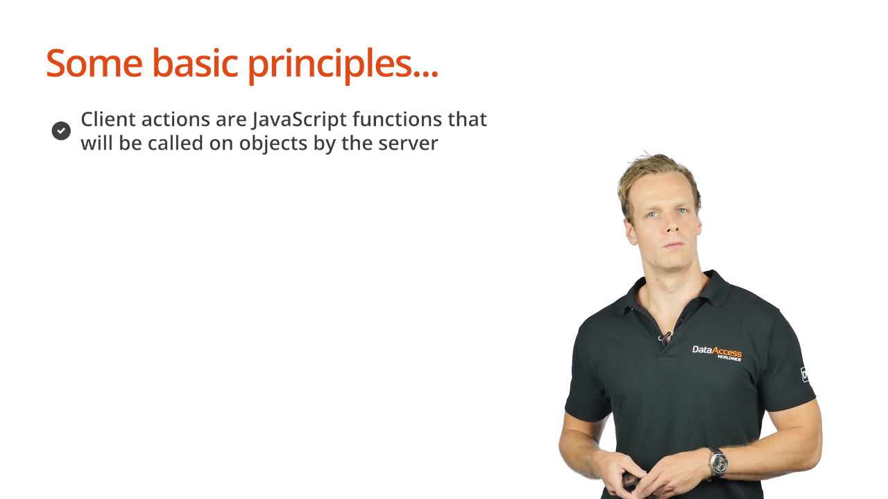 - Client actions are action calls from the server to the client, which executes on the client-side portion of the control. Essentially it is a JavaScript function.
