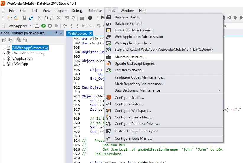 - To include the library in any workspace, we’ll first go into maintain libraries and select the 19.1 workspace.