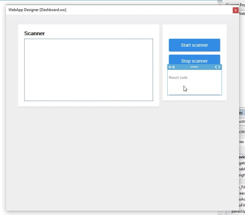 - In our demo we can see the setup that we saw earlier, so we have the buttons to start and stop the scanner here, the form containing the result and the scanner component itself
