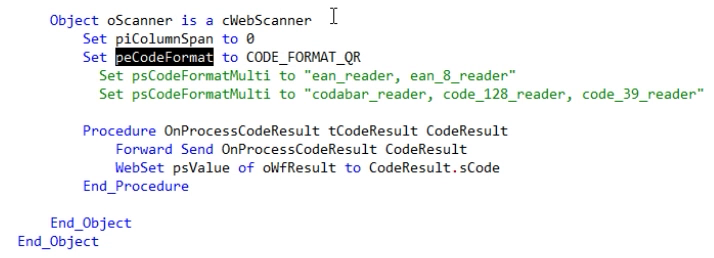 - There are 2 key properties to highlight. peCodeFormat allows you to prime to scanner to look for a single, specific format using a set of provided constants