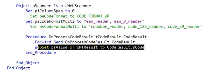 - In our example, we are WebSetting the psValue of the result form with the data stored inside the code
