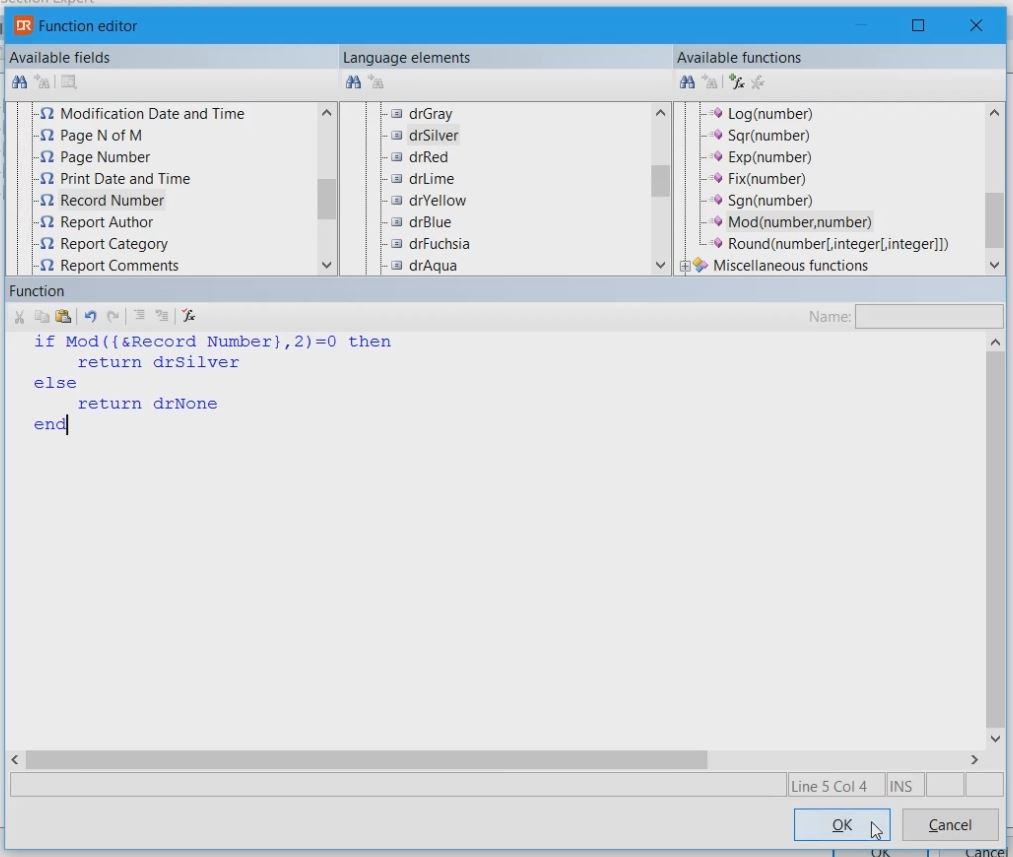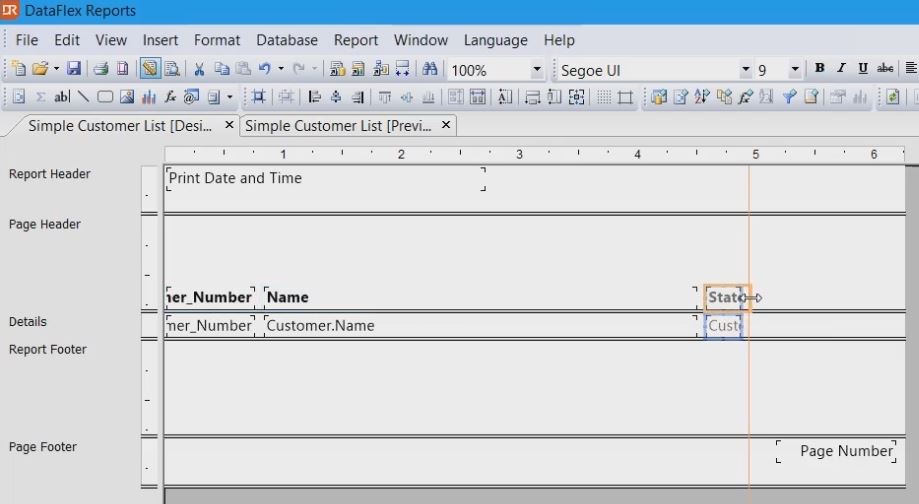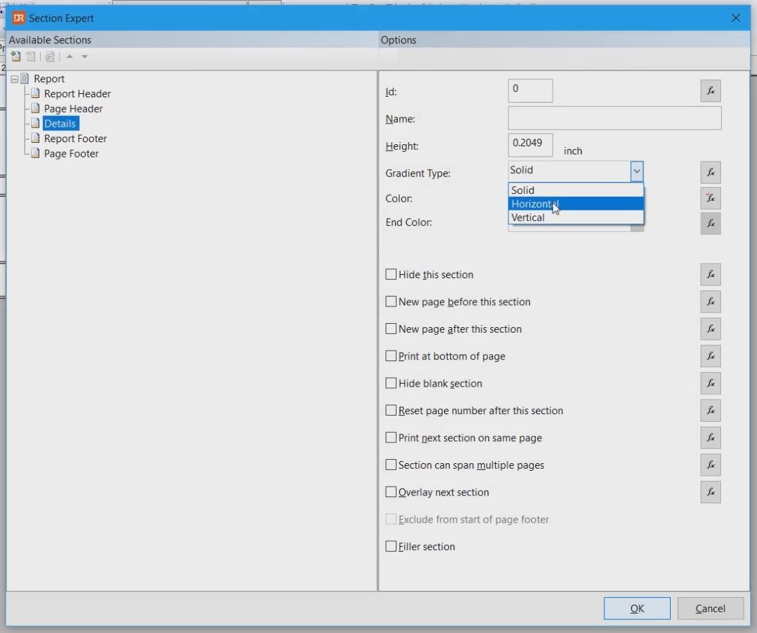 Move the mouse to the left margin of theReport Designer, click the right mouse and open the section expert.