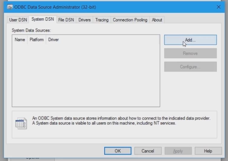 For this lesson: create a system DSN, by clicking the add button.