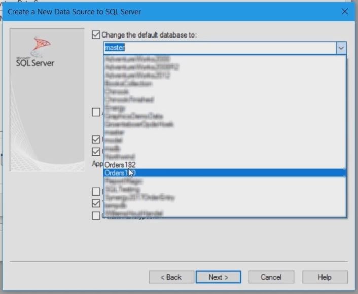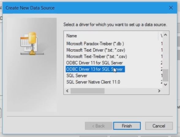 Select the ODBC driver from the list that appears. In this case: the ODBC Driver 13 for SQL server.