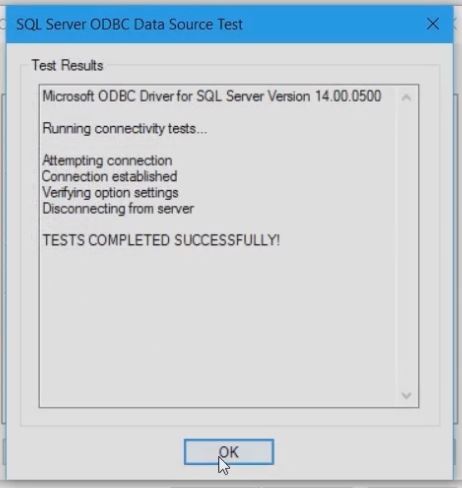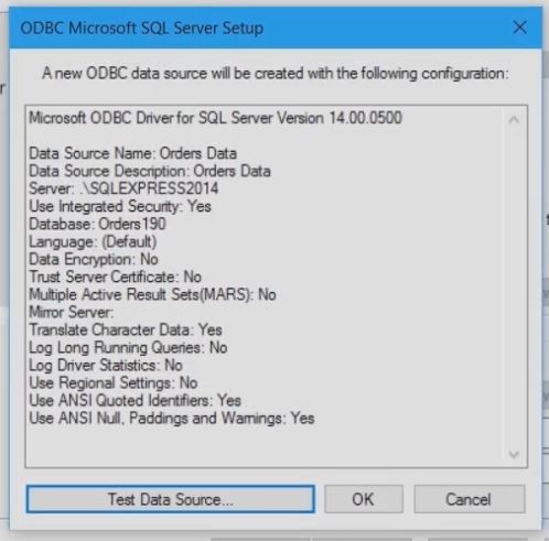 This finishes the creation of the ODBC data source.