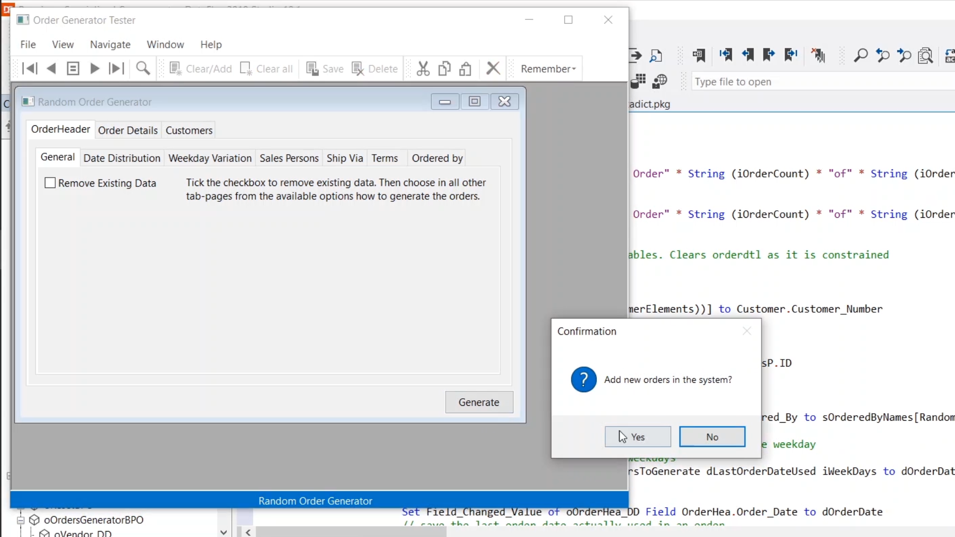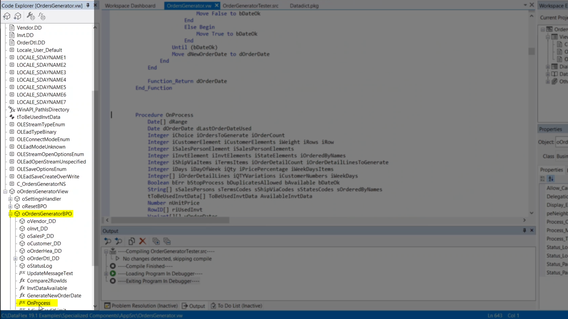 For this demonstration, code in the oOrdersGeneratorBPO in the OnProcess method will be used.