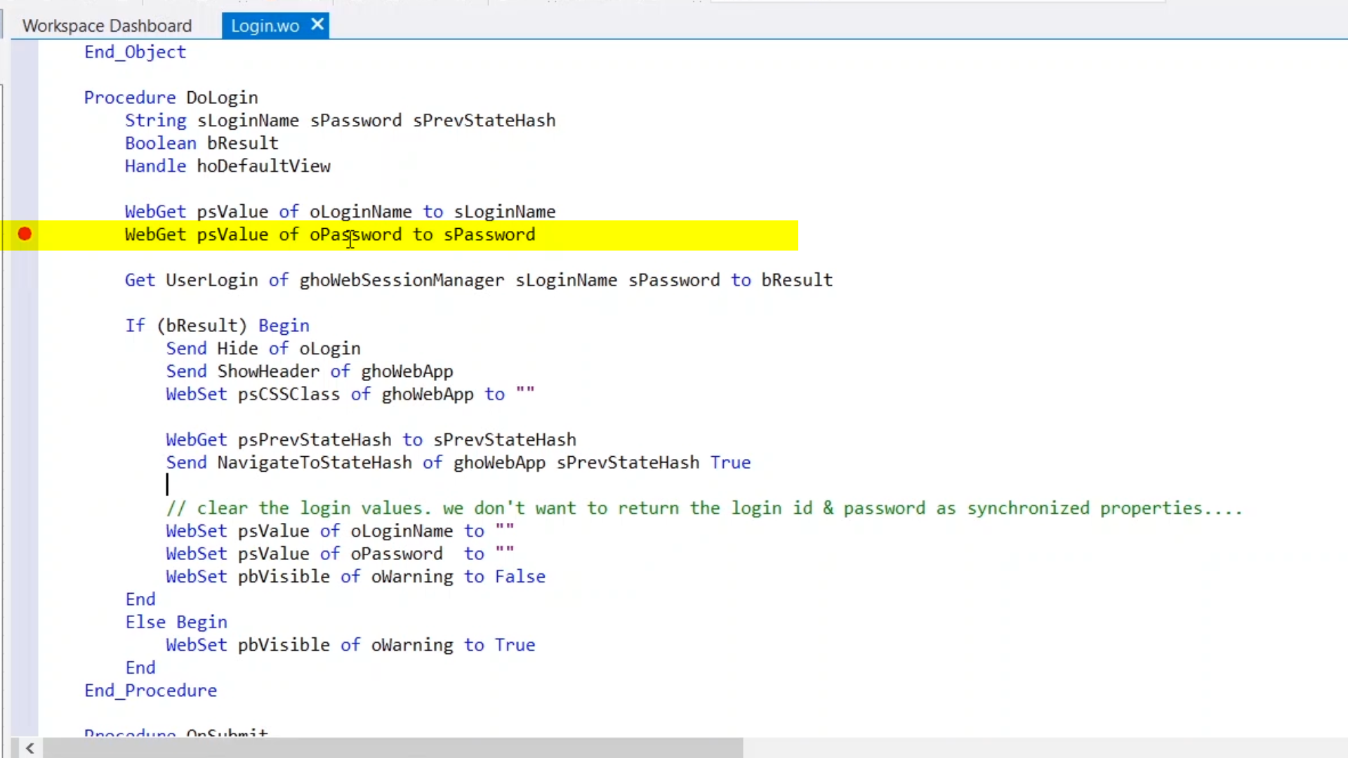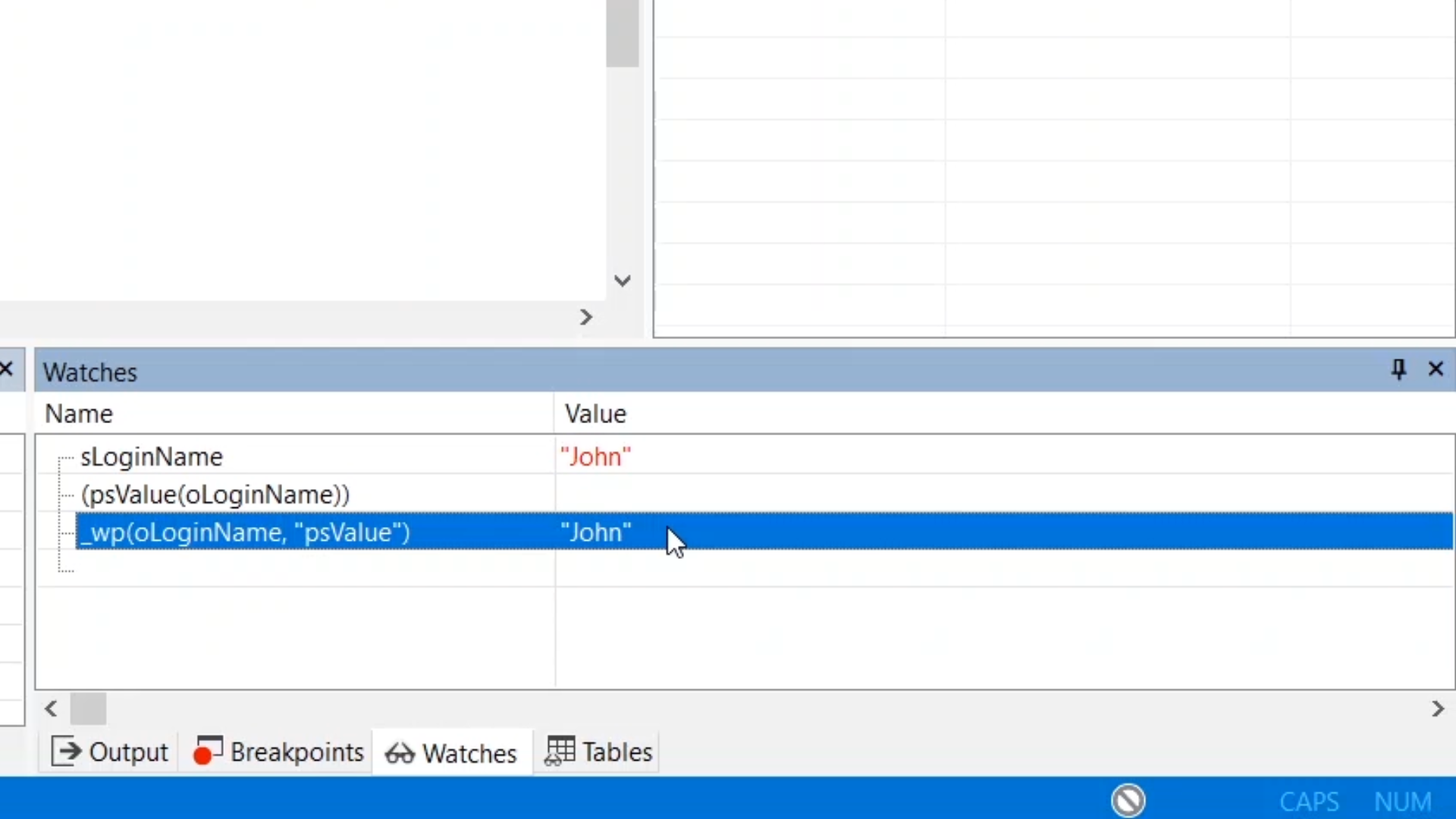 Web properties are complex properties that have both design time and web session values. Web session values of web properties can be evaluated in the Debugger using the Debugger-only “_wp” operator. Inside running WebApp code, “WebGet” can be used instead.