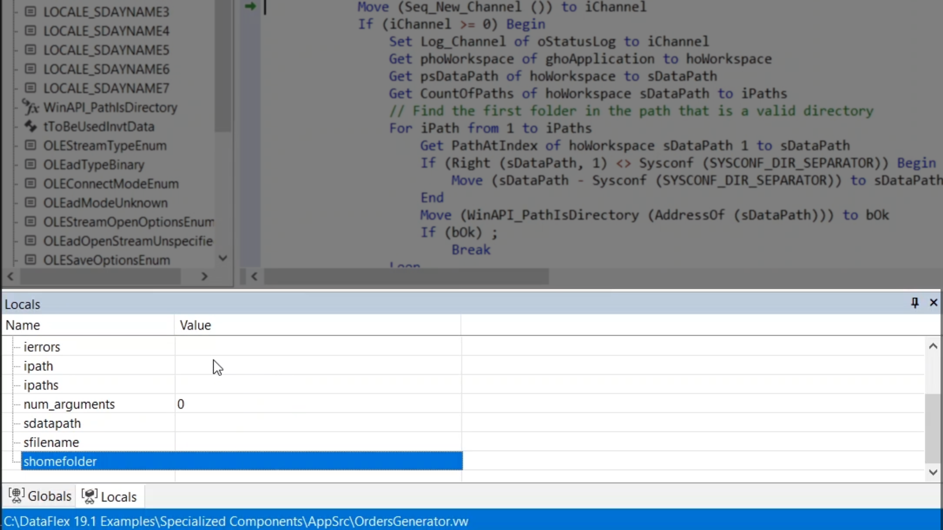 - The value of variables can be edited within the Locals window – bRemoveExistingData can be changed to ‘true’