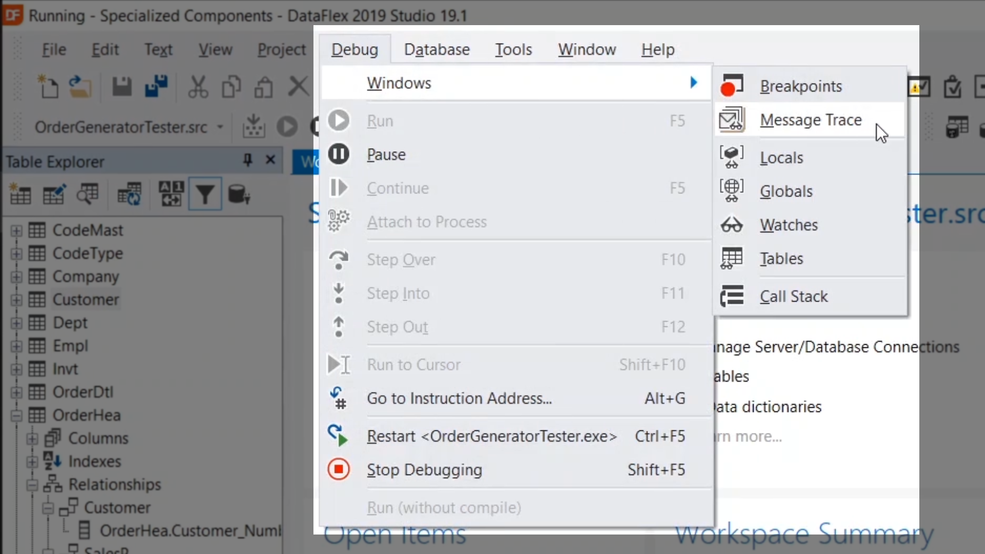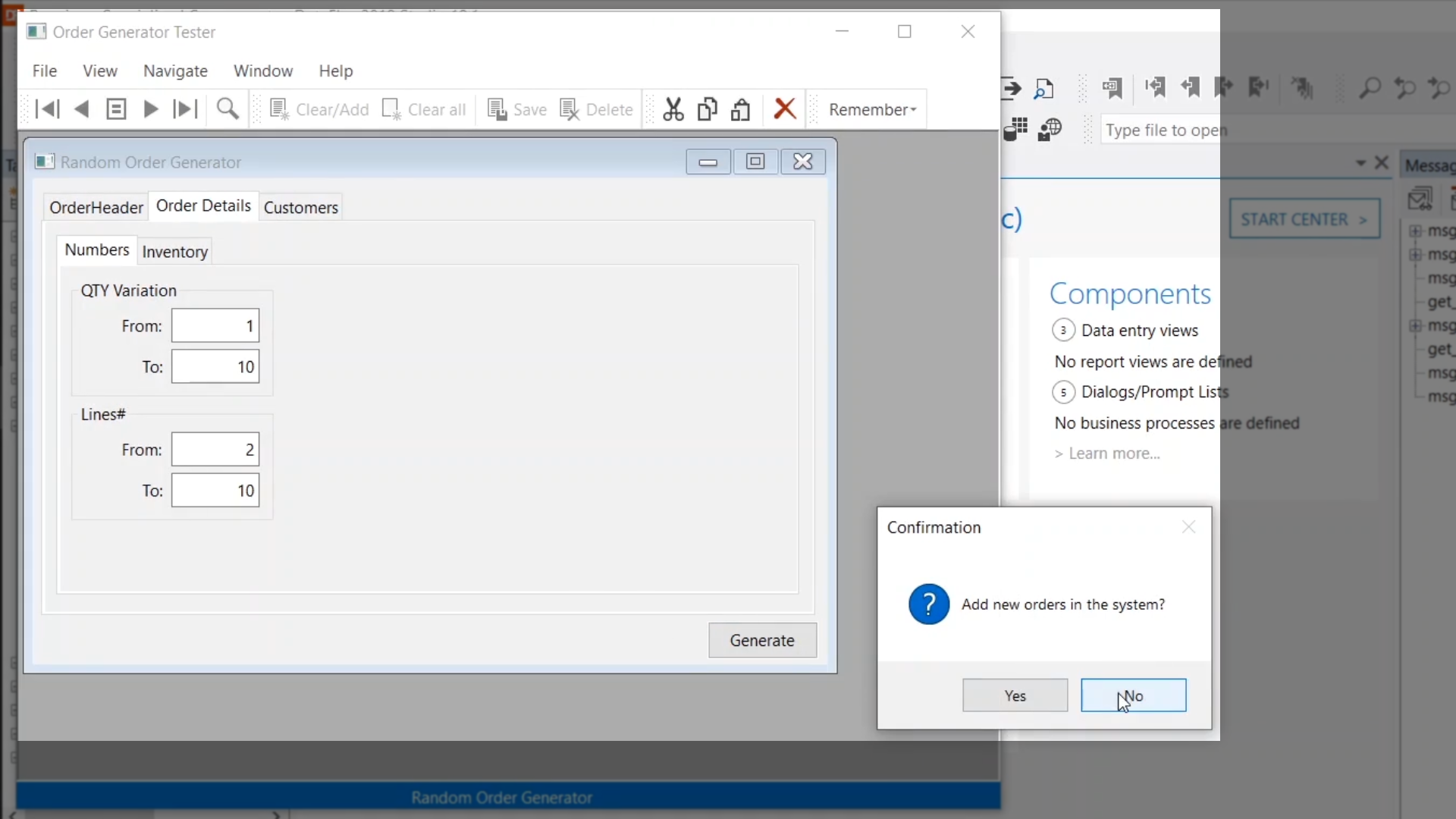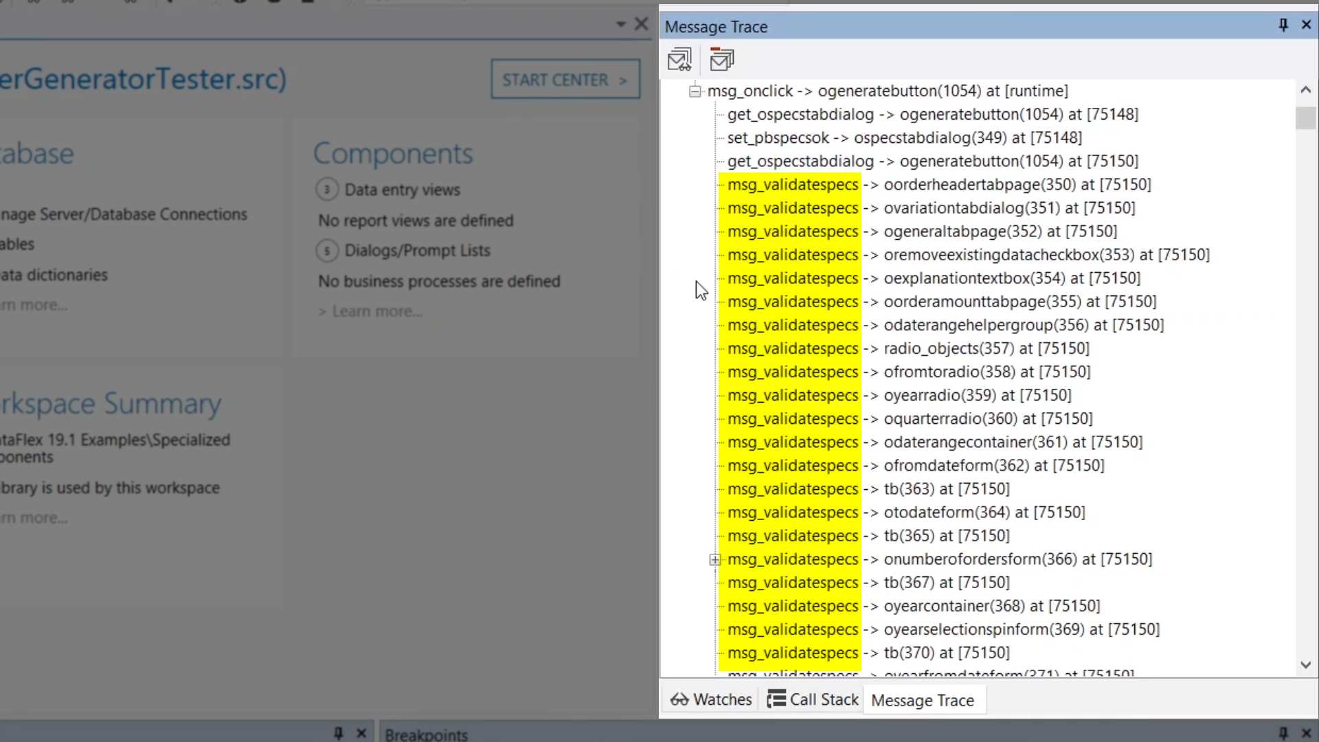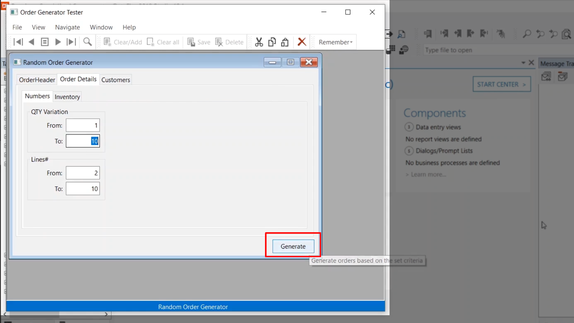 Demonstration – Messages sent when the button is selected in the OrderGenerator.vw