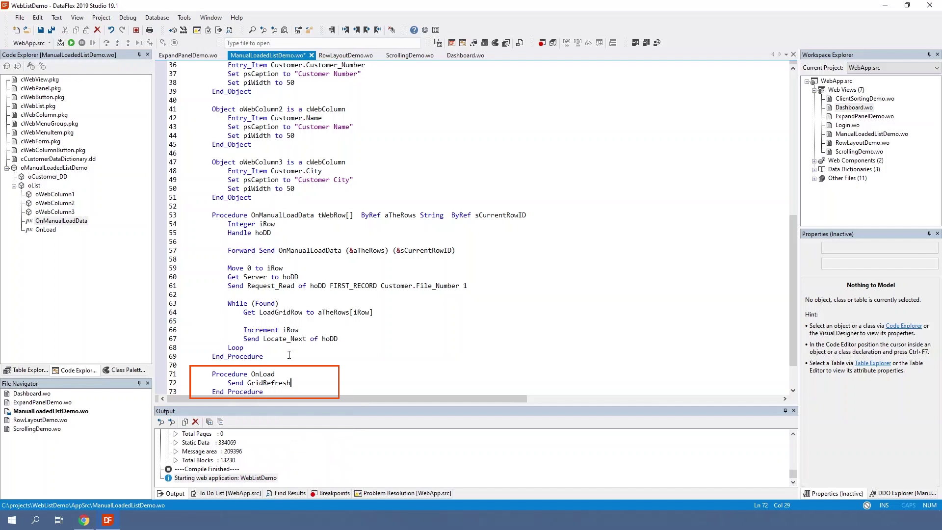 - Now let’s also implement the OnLoad procedure where we call GridRefresh to fill the list