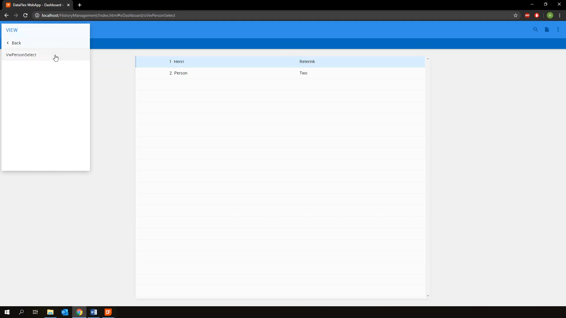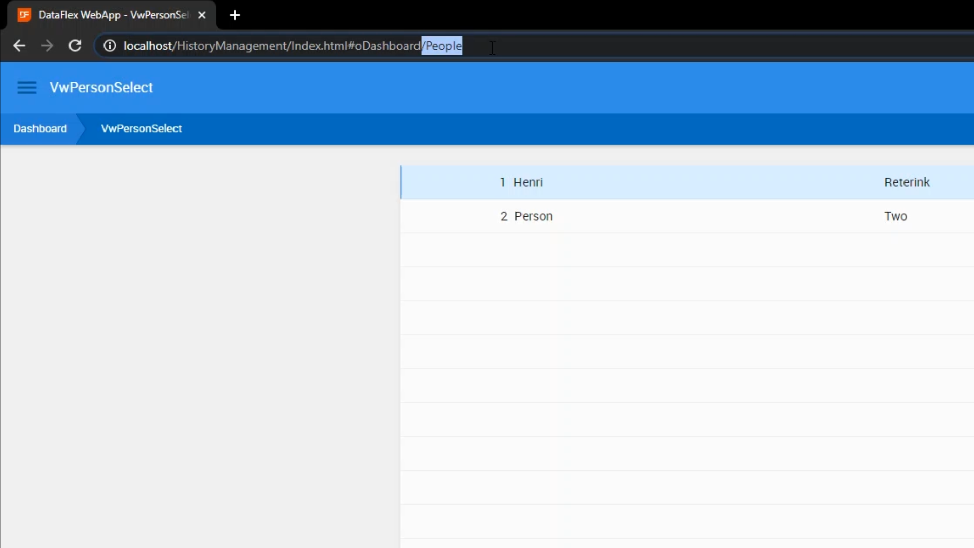 - After compiling and running the app, the ‘Person Select’ view now shows the new name, and the old URL which navigated to oVwPersonSelect no longer works.