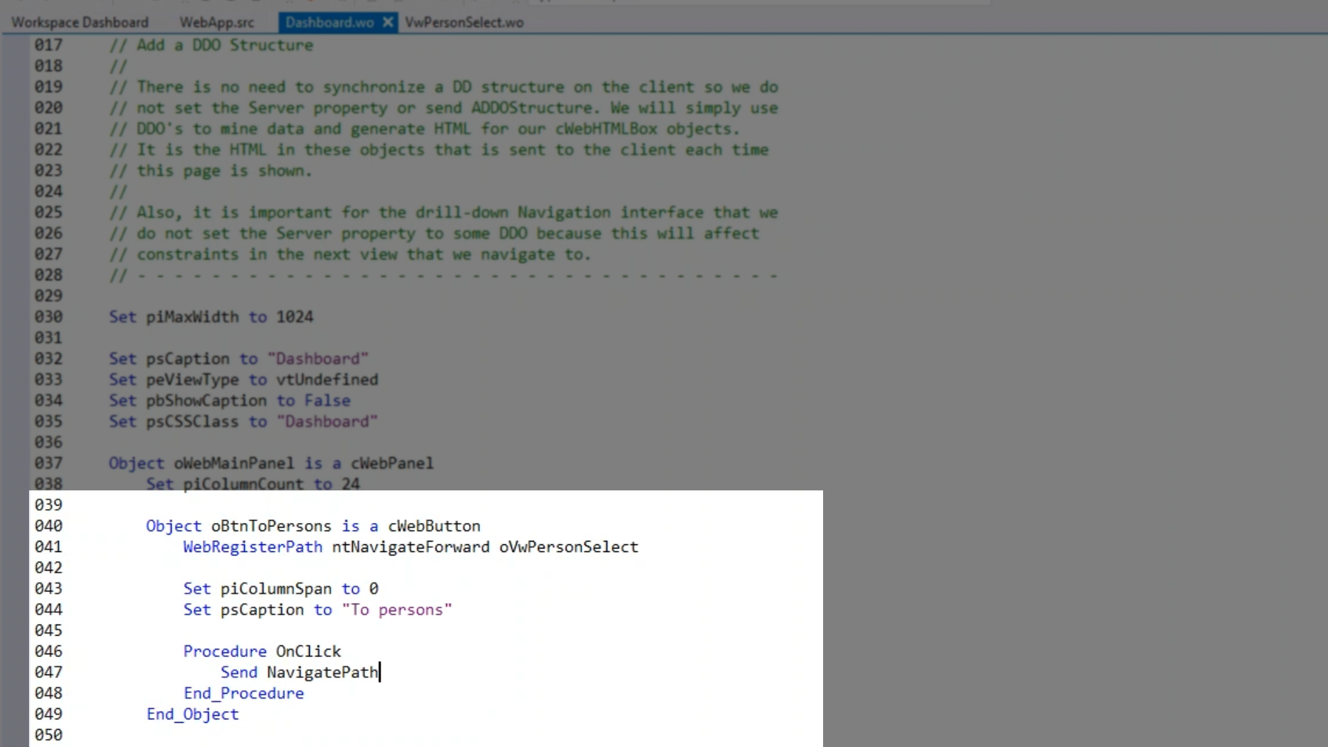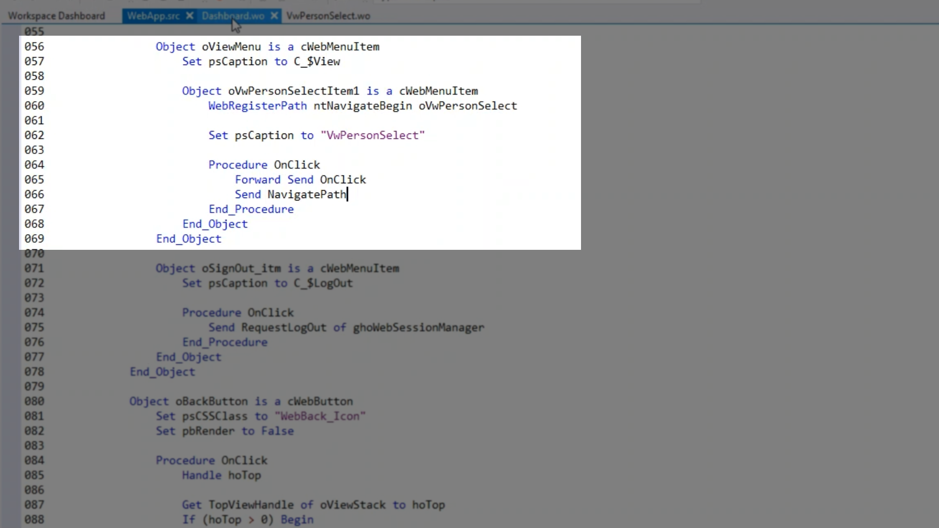 To do this, an instruction called WebRegisterPath is used in a view or object that performs the navigation.