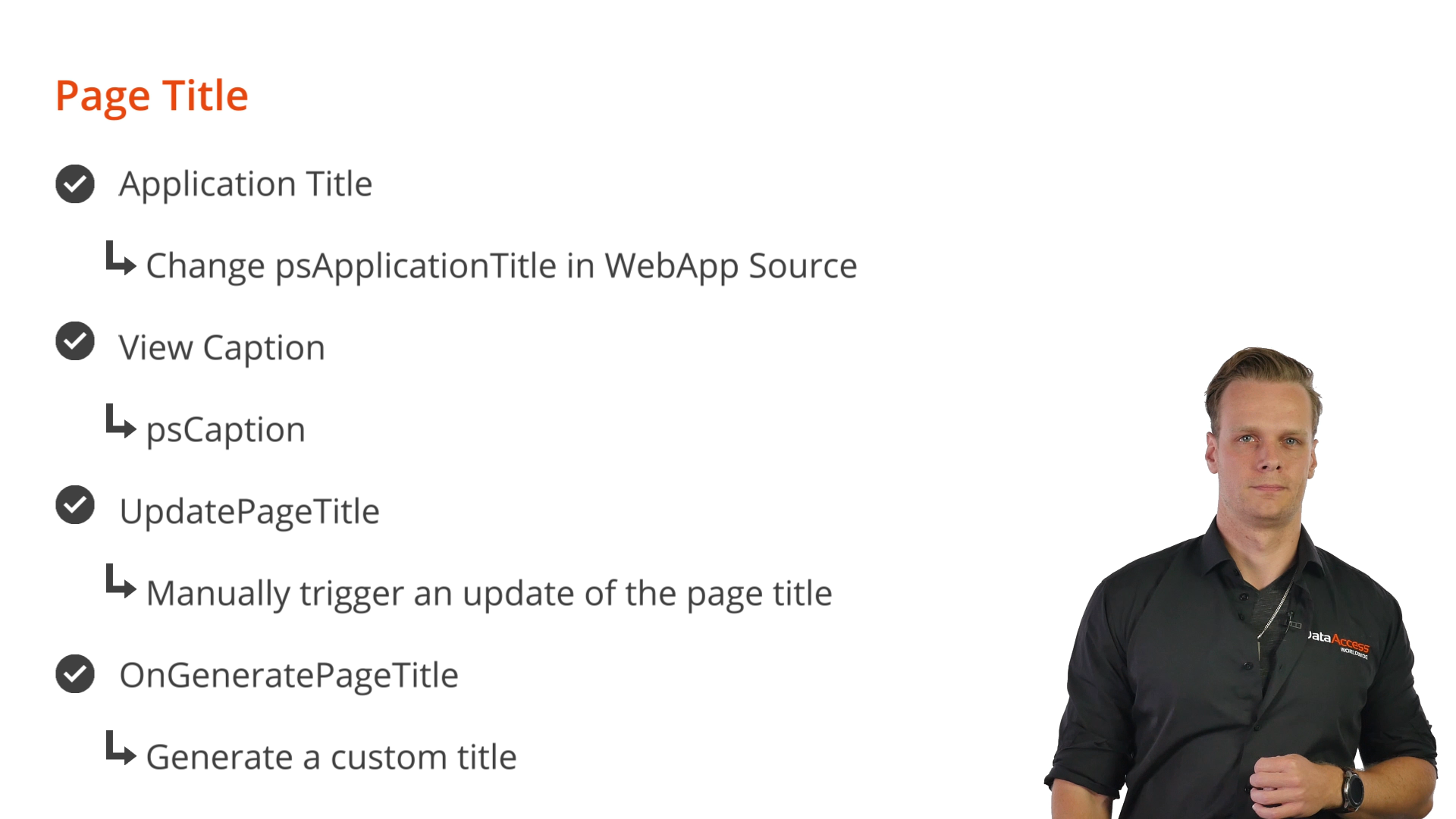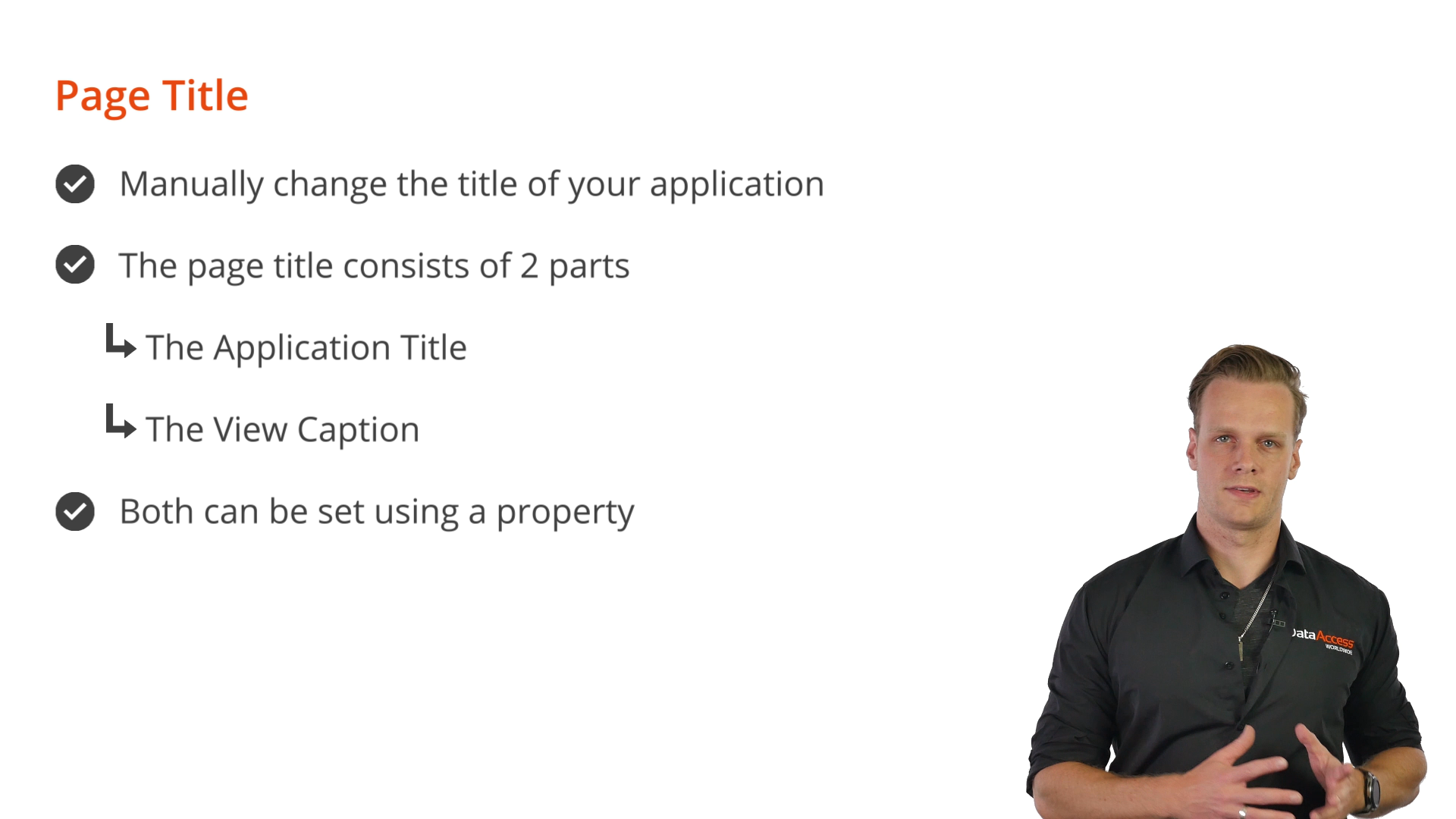 The page title consists of 2 parts: the Application Title and the View Caption. Both can be set using a property.