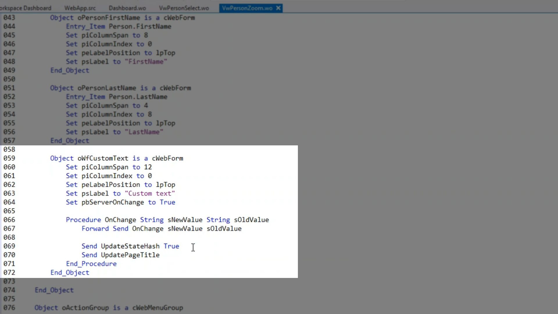 To make this work, expand the Custom Text form (VwPersonZoom.wo).