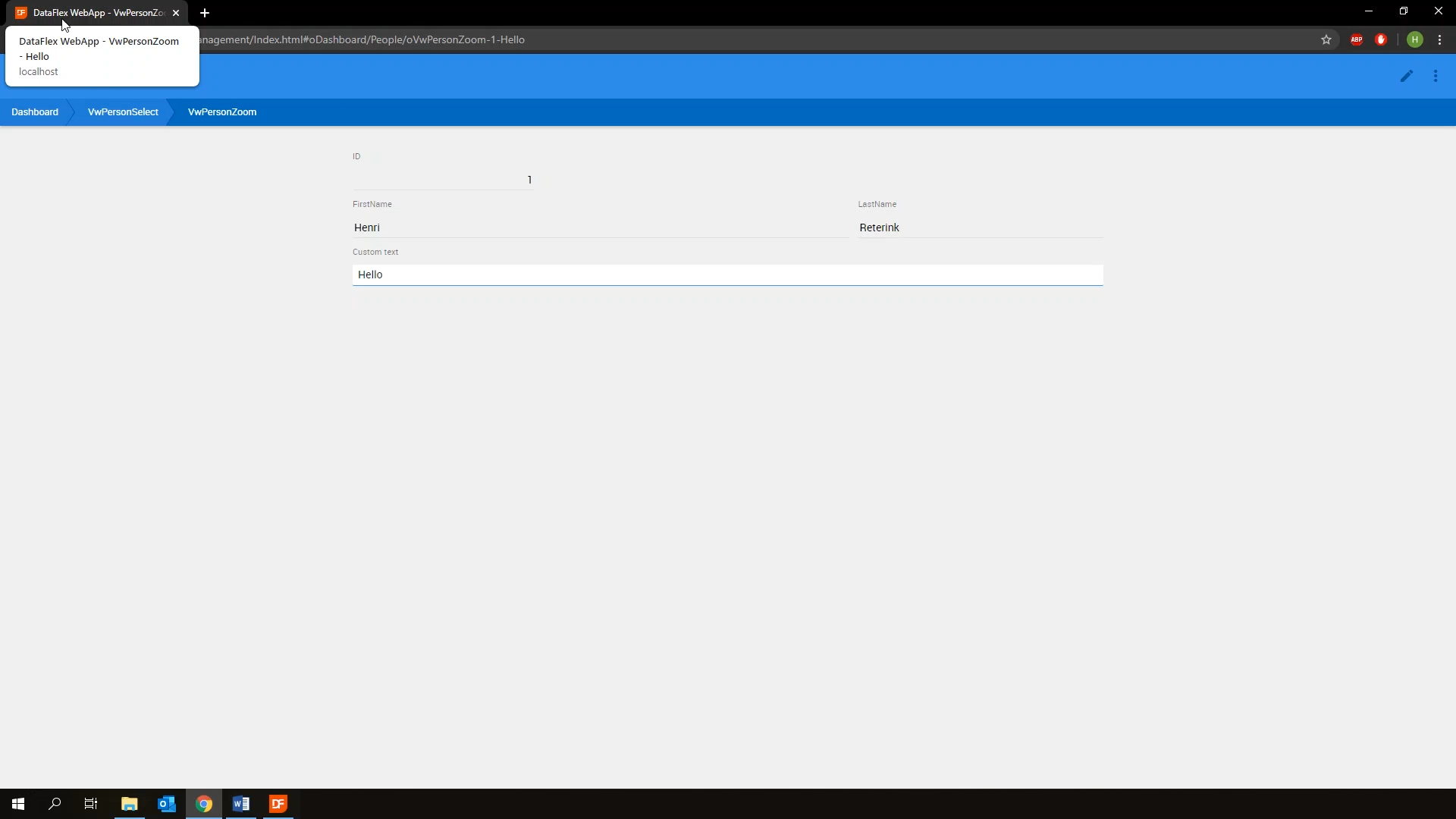 Compiling and running the application will show that when the form is filled out the value is now reflected in the page title.