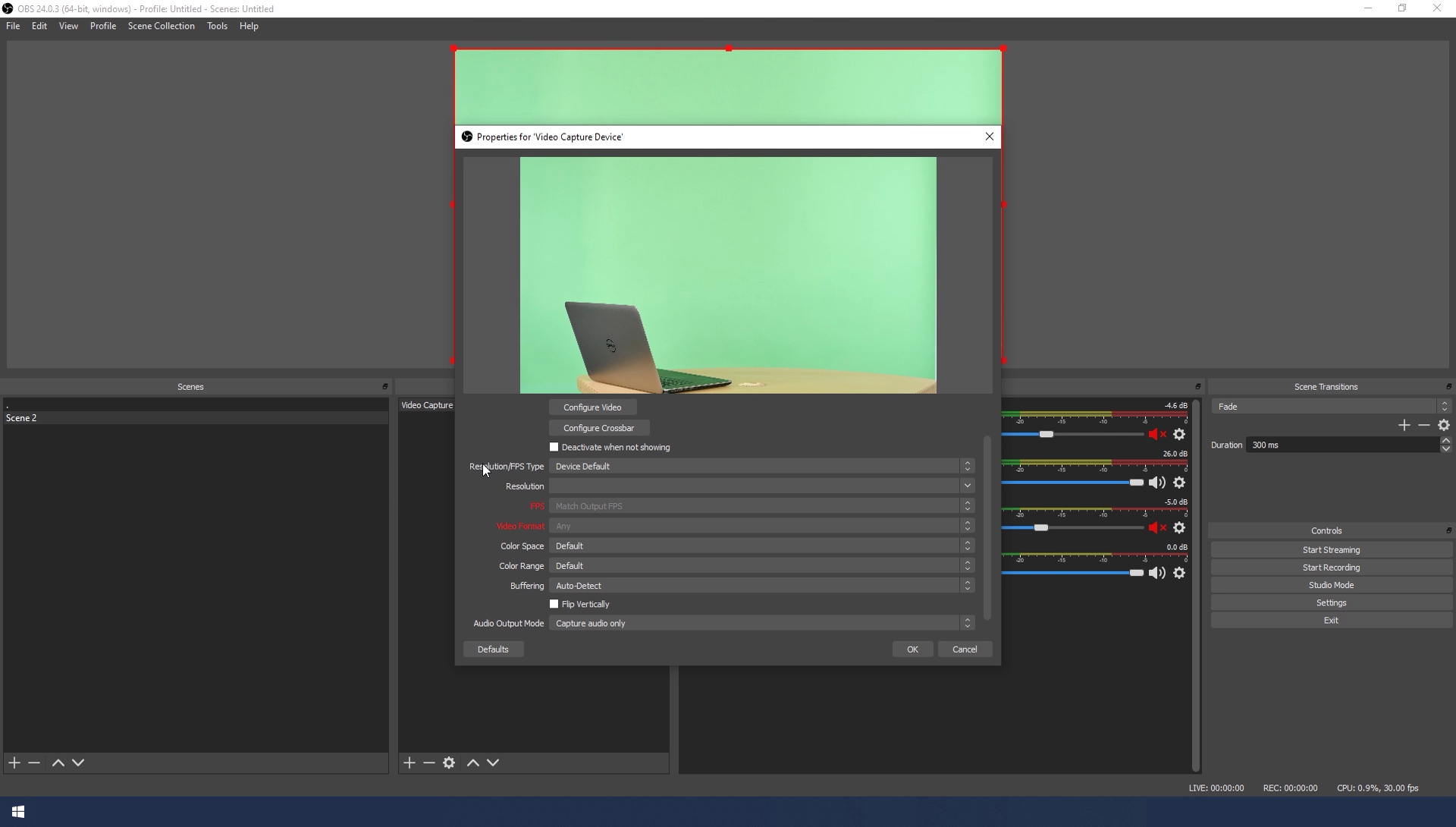 - You can change properties as the resolution and the frame rate, but we leave it as is