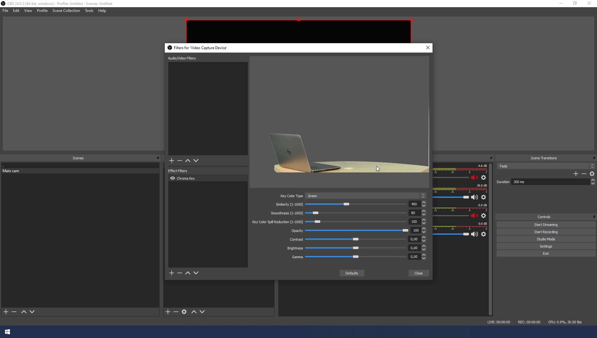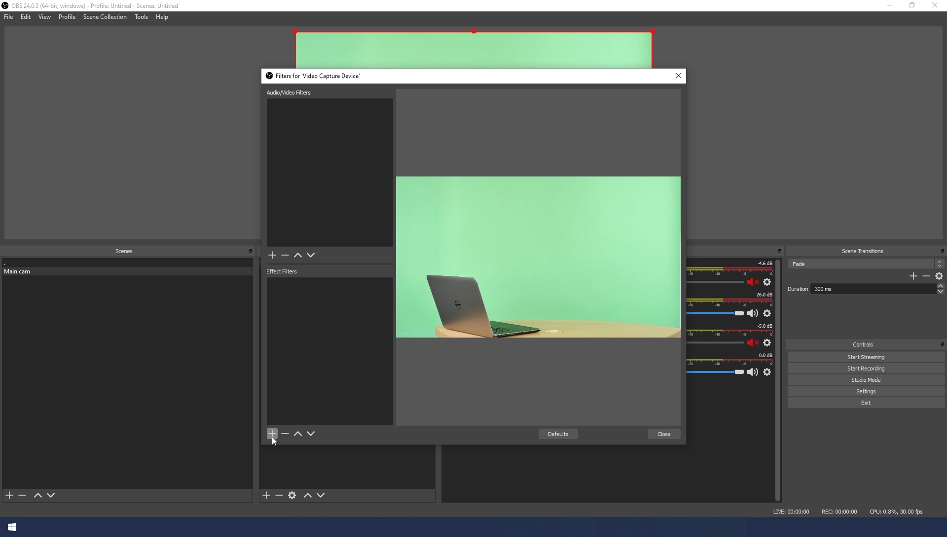 - Let's create a green screen effect to the camera feed