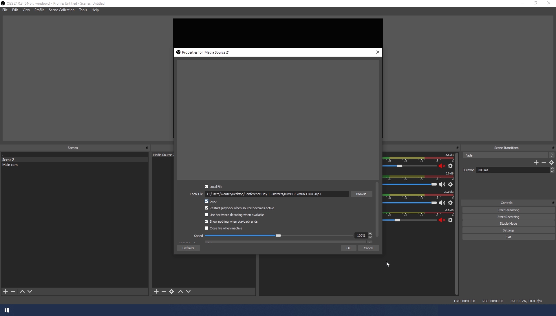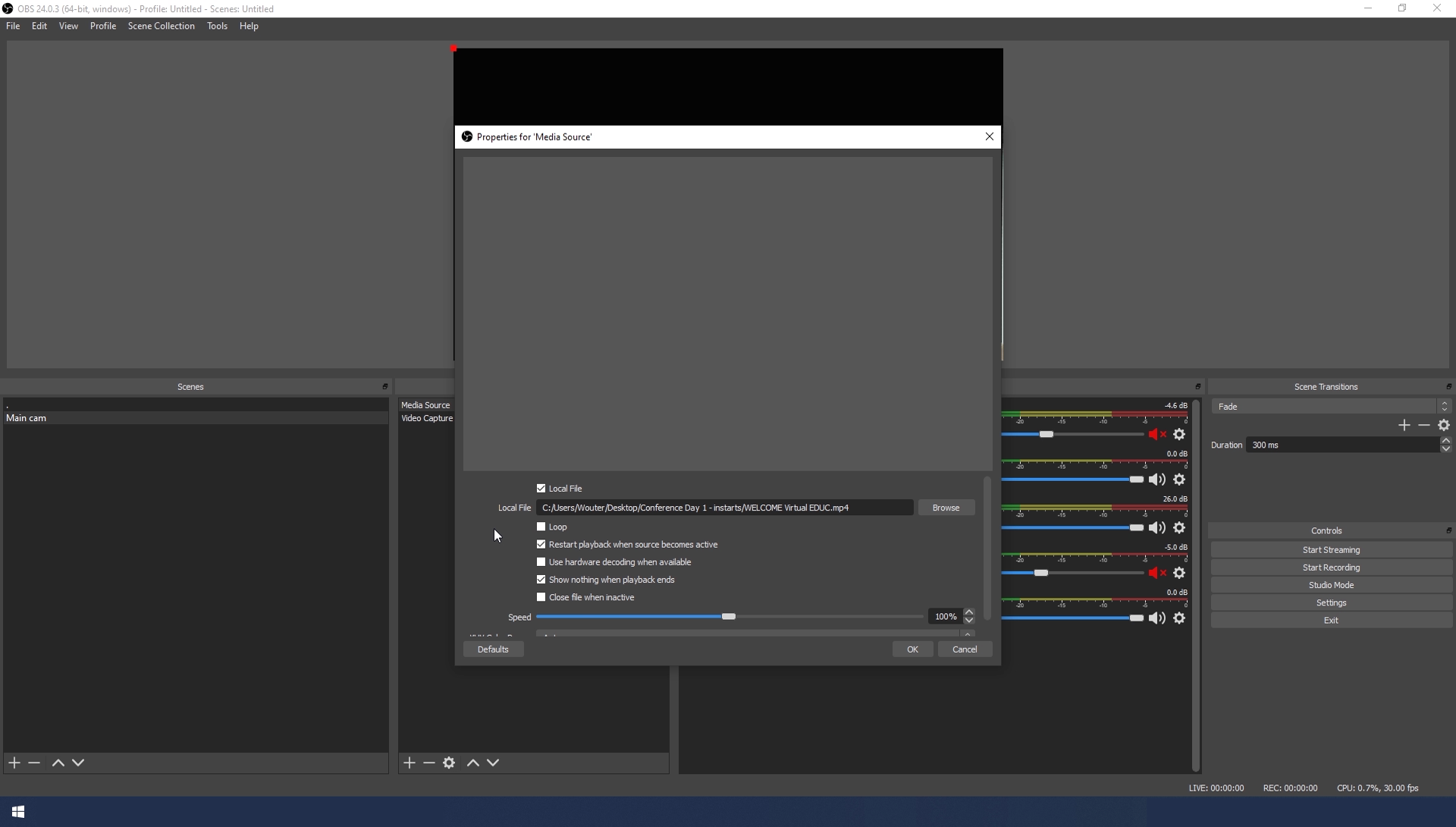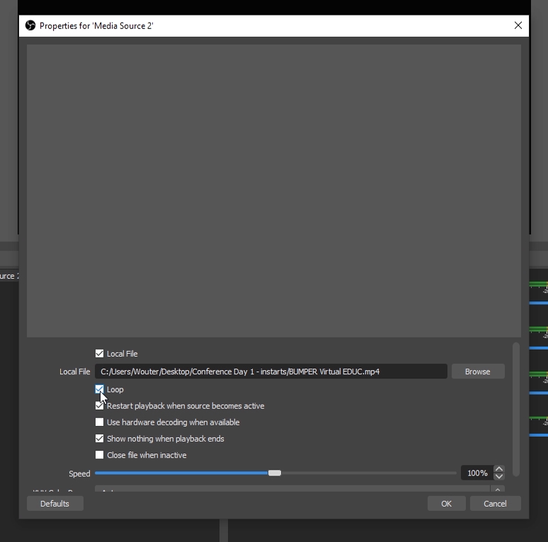 - To prevent this go back to the settings of the Media Source in the Source Panel by double clicking on the Source