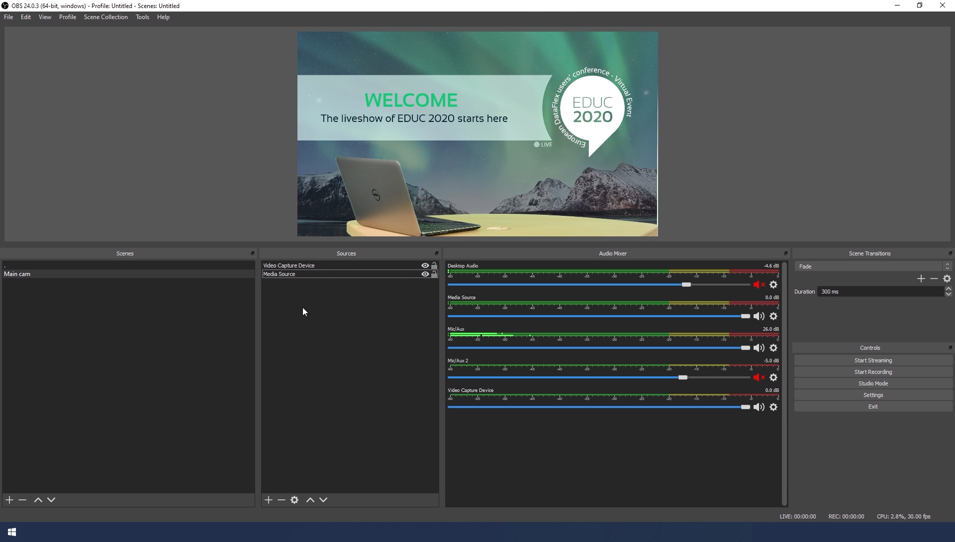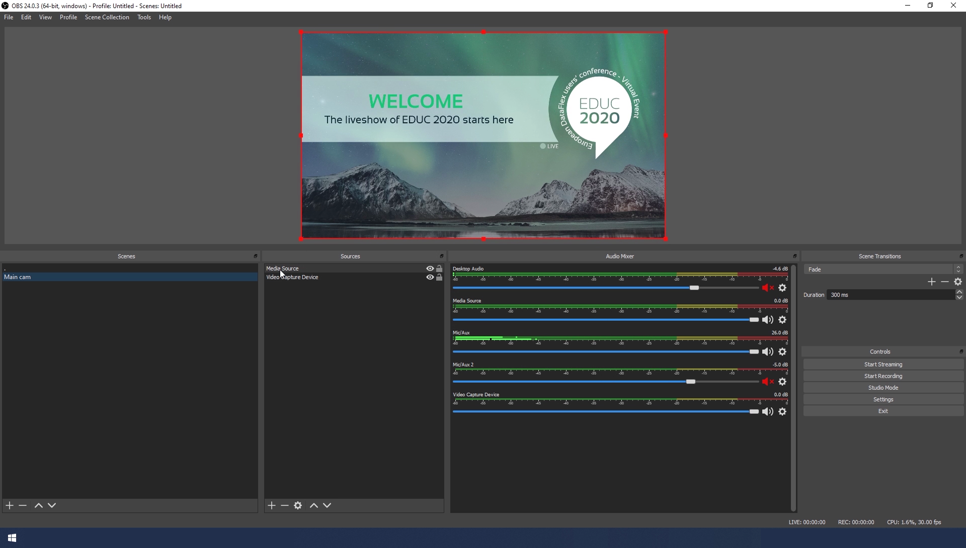 - You can select any source you like: a video, photo, graphic etc. We choose a video that we've used for the EDUC livestream. So here we select Media Source
