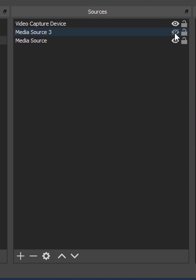- If you want to switch between the different green screen background upload different sources. Click on the eye icon to switch the sources on or off