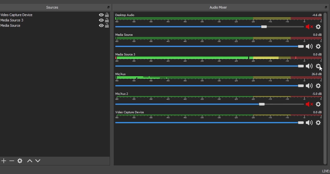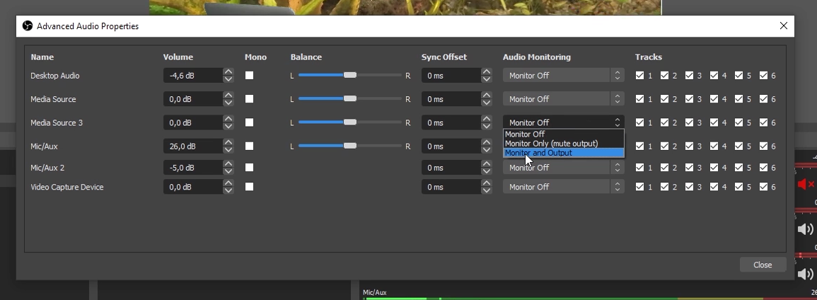 - If you add a new source a new audio track will be created as well, if you want the audio to play back on the stream: