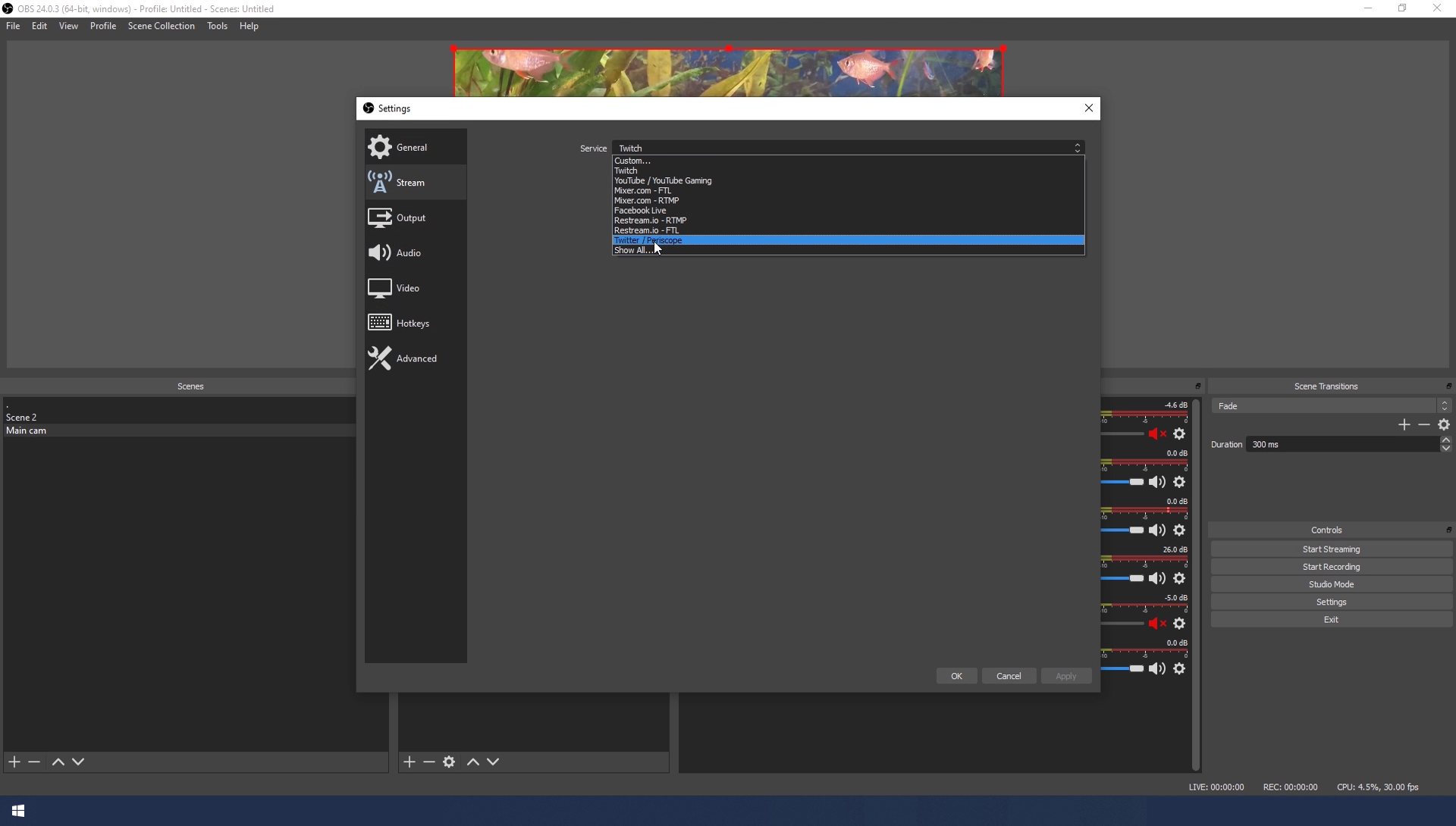 - Control your stream by switching between the different scenes and sources