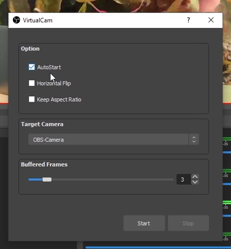 - Select AutoStart, so the Virtal Cam is started every time you start OBS