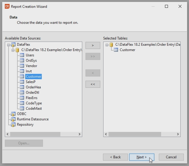 Double click the DataFlex Data source.