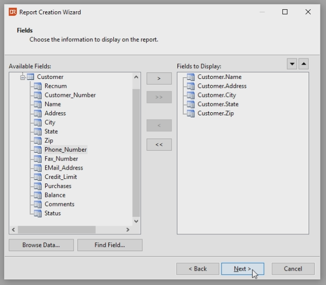 Select the Fields: - Name - Address - City - State - Zip