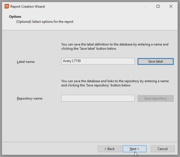 The labels can be saved, so the same format can be used later on. Enter the name Avery L7159 and Save the Label.