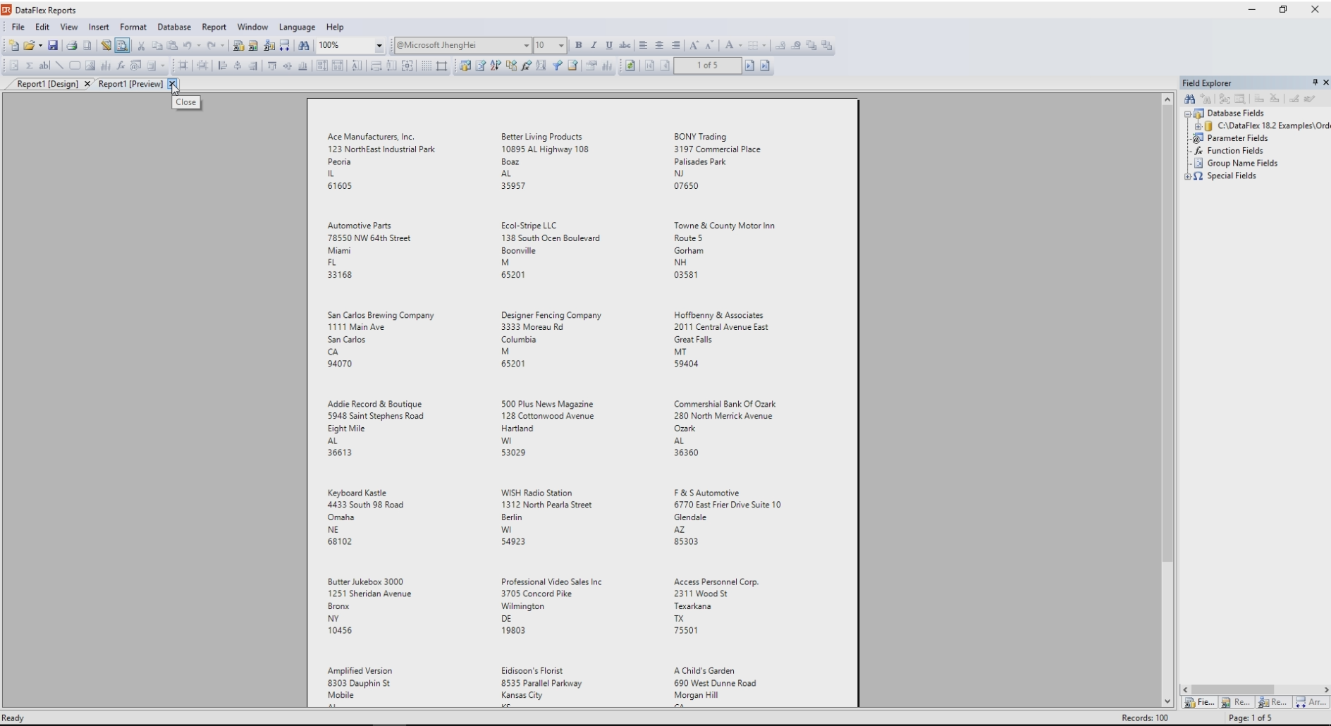 Label Reports can be used to print multiple records horizontally side-by-side. It’s very useful for printing address or price labels.