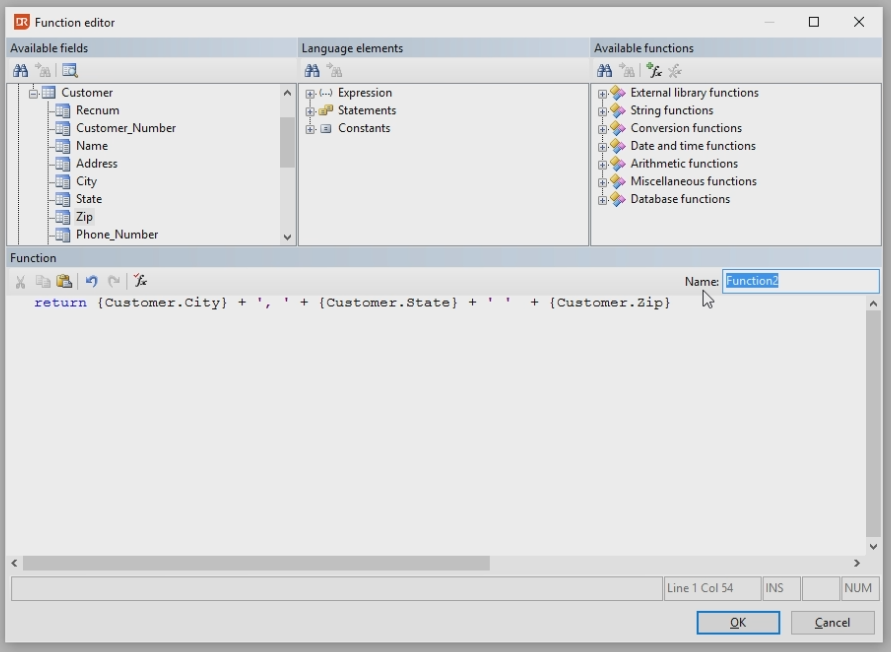 Create the function field: - Type: return - Select the City, State and Zip Fields - Change the name to CityStateZip It should look like this: