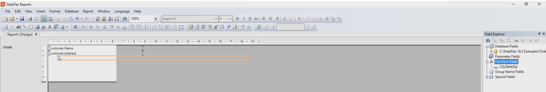 Let’s design this a bit. Click Function Fields in the Field Explorer and click the Add a Function Field button.