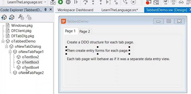 3. If you click on an item in the designer, you see that is also selects the item in the code explorer. This shows us the object structure of your program.