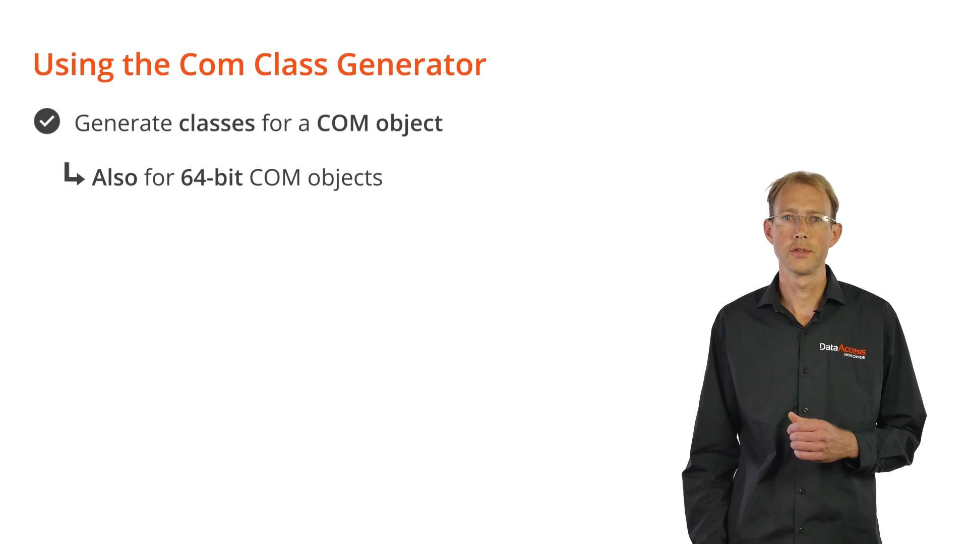 - The Com Class generator is a handy tool to generate classes for a COM object. In DataFlex 2021, this can now be done for 64-bit COM objects.